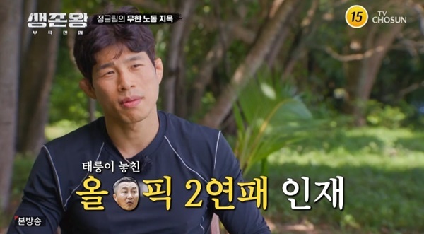 '생존왕'25일방송TV조선'생존왕'캡처TV조선'생존왕'캡처(서울=뉴스1)박하나기자='생존왕'정지현이김병만의지치지않는모습에힘겨워했다.25일오후에방송된TV조선예능프로그램'생존왕'에서는2라운드세번째대결'석양럭비'에서정글팀이1위를차지했다.정글팀(김병만-김동준-정지현,용병김민지)이'석양럭비'에서김민지의활약으로1위를차지하며가까스로탈락위기를벗어났다.대결이끝난뒤생존지로돌아간정글팀은쉬지않는팀장김병만때문에무한노동지옥에빠져힘겨워하는모습으로눈길을끌었다.레슬링금메달리스트정지현은제작진과의인터뷰에서"(김병만은)단한순간도안쉰다,말려도안쉰다"라며"계속직진,저런성향이면분명올림픽금메달땄다"라고고충을토로했다.더불어정지현은"저보다도더미친듯이파고드는사람이다,2연패했을수도있다"라며김병만의에너지에혀를내둘렀다.한편TV조선'생존왕'은각분야의최강자12인이모여거친정글속에서가장강한생존능력자를가리는생존서바이벌프로그램으로매주월요일오후10시에방송된다[email protected]©뉴스1.Allrightsreserved.무단전재및재배포,AI학습이용금지.