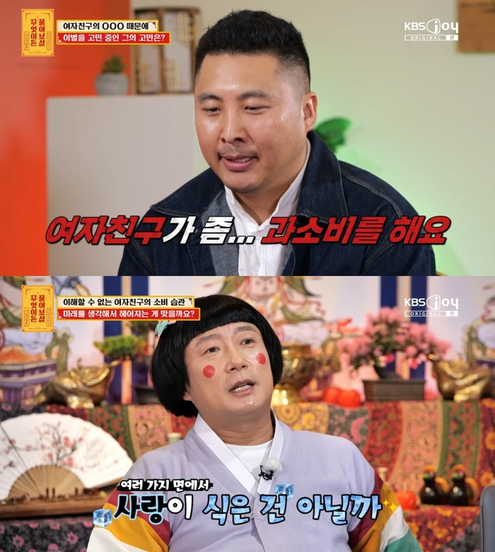 ‘무엇이든물어보살’.사진IKBSJoy‘무엇이든물어보살’방송캡처코미디언이수근이여자친구의과소비를걱정하는사연자에게일침을날렸다.25일방송된KBSJoy‘무엇이든물어보살’에는8개월사귄여자친구의과소비가걱정이라는사연자가출연했다.이날사연자는“8개월된여자친구가있다.결혼까지생각하고있는데여자친구가과소비하는경향이있다.소비습관이너무다르다보니‘헤어져야하나’라는고민이있다”고토로했다.사연자는차가있음에도렌터카를빌려오거나한끼식사에비싼값을지불하는등여자친구의과소비에피소드를전했다.이를들은서장훈은“(여자친구가)과소비를엄청자주한다?그럼문제다.어쩌다한번하는걸로시비를건다?그냥네가여자친구에대한마음이예전같지않은거아니냐.그냥꼬투리잡는걸로밖에안보인다”고지적했다.이수근역시“지금까지식당에서네가계산했다면그럴수있겠다하는데네가계산을안했다면여러가지면에서사랑이식은게아닌가싶다”고덧붙였다.한편‘무엇이든물어보살’은매주월요일오후8시30분방송된다.[이세빈스타투데이객원기자]Copyright©스타투데이.무단전재,재배포및AI학습이용금지