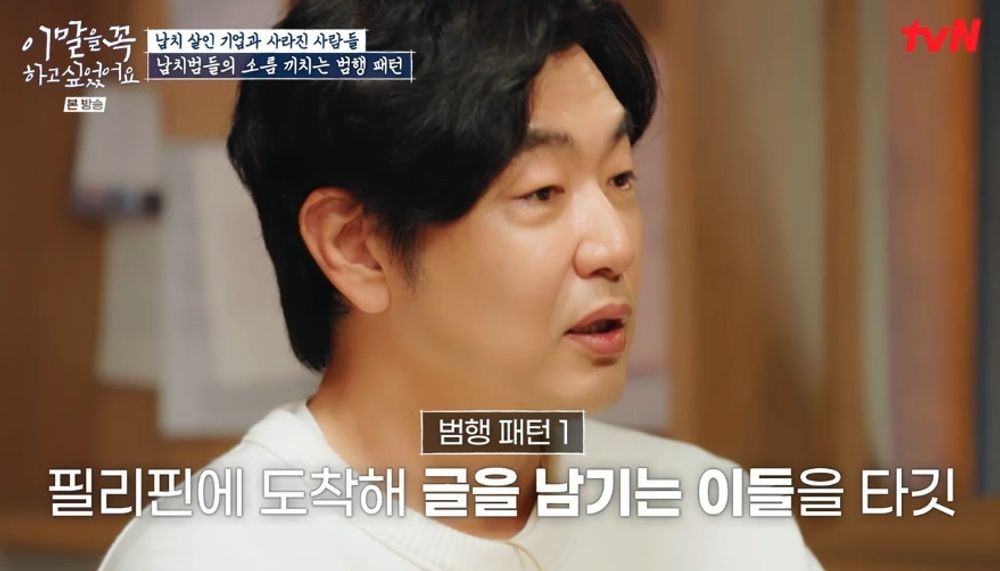 [TV리포트=이혜미기자]영화‘범죄도시2’를연상케하는필리핀납치살인사건의전말이‘이말꼭’을통해공개됐다.25일tvN‘이말을꼭하고싶었어요’에선필리핀납치살인기업과사라진사람들의이야기가그려졌다.해당사건의피해자들은납치여파로승합차를보는것만으로공포를느낄정도의트라우마를겪는중.당시사건을취재했던기자는피해자들사이에서공통점을발견했다며피해자들대부분이필리핀에도착해여행관련커뮤니티에글을남겼고,현지상황을잘알고있다는인물로부터여행정보를주겠다는‘쪽지’를받은사실을확인했다.약속장소에서피해자들을기다리고있었던이는바로중년남성.이남성은피해자들과술자리를함께하며호구조사를하듯개인신상정보에대해캐물었다.이에김창완은“빤하다.돈나올곳이어딘지캐내는것이다.피해자들은당연히알아채지못했을것”이라고한탄했다.그말대로피해자들을안심시킨후저렴한값에투어사장을만나게해주겠다며피해자들을승합차에태운남성은“너납치된거야”라고말하며일행들과함께그들을납치했다.뿐만아니라피해자들을아지트로끌고가구타를가하고옷을벗겨결박했다.나아가“네몸값은1억이야.그돈어떻게마련할지잘생각해봐”라고대놓고협박을하곤가족들에게연락을취해돈을마련하라명령했다고.이에김창완은“이게다순식간에일어난일아닌가.그러니승합차만봐도공포를느낄만하다.계좌에있는현금이며대출까지받아돈을마련하게했다”라며한숨을쉬었다.범인들이지난4년간납치살인으로올린수익만6억4천만원으로확인된납치피해자만20명.이에김창완은“실제론더있을것”이라며격노한반응을보였다.이혜미기자[email protected]/사진=‘이말을꼭하고싶었어요’방송화면캡처Copyright©TV리포트.무단전재및재배포금지