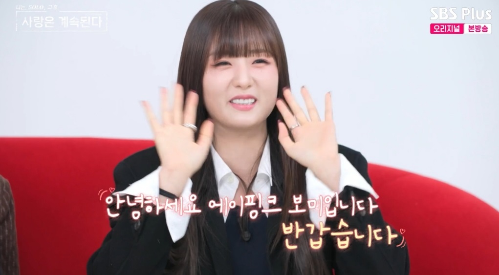 (엑스포츠뉴스이예진기자)그룹에이핑크윤보미가‘나솔사계’새MC로성공적인신고식을치렀다.윤보미는지난14일방송된SBSPlus와ENA의‘나는SOLO,그후사랑은계속된다’(이하‘나솔사계’)에새MC로합류했다.이날윤보미는‘솔로민박’사상최초로펼쳐진돌싱특집에애청자모드를가동했다.평소가족들도‘나는솔로’와‘나솔사계’를즐겨본다는윤보미는“저는진짜중독수준이다.한분도빠짐없이다안다”라고자신했다.데프콘은이때"하긴지금연애를하고계셔서"라며돌직구를날렸다.이에당황한윤보미,경리또한"노빠꾸다"라며놀람을표했다.윤보미는당황한듯웃어보이며별다른말을하지않았고,데프콘은"남자친구도피아노를치면서같이보시냐"라고물었다.그저웃기만하던윤보미는"땀이나지"라며당황한모습을보였다.이어윤보미는MC신고식으로진행된인물맞히기에10기정숙을단번에알아보고는‘손풍기’동작을취해웃음을자아냈다.16기영자까지바로기억해낸윤보미는“진짜나왔으면좋겠다고생각했다.그때약간자신감이없었는데이번에는자신감을찾은모습을보고싶다”라며진심어린응원을보냈다.MC데프콘의멘트에윤보미는쾌활하면서순발력있는리액션으로화답하며분위기에녹아들었다.또‘솔로민박’의로맨스에한껏이입해“연령대가있으신분들도나와서다행이다”,“분위기가벌써좋다”,“아직마음에드는분이안나왔나보다”등적재적소멘트로출연자들의반응을즉각분석하며보는재미를높였다.MC로첫방송을성공적으로마친윤보미는“너무재밌어서시간이빨리간다.‘나솔사계’에제얼굴이나온다니벌써기대된다.아빠가너무좋아할것같다”라고기대감어린소감을남겼다.한편,윤보미는올해에이핑크및유닛초봄(CHOBOM)활동과더불어드라마‘눈물의여왕’에나비서역으로출연하며배우로도많은사랑을받았다.윤보미가속한에이핑크는오는12월21일과22일서울강서구KBS아레나에서20247th단독콘서트‘PINKCHRISTMAS’(핑크크리스마스)를개최한다.윤보미가출연하는‘나는SOLO,그후사랑은계속된다’는매주목요일오후10시30분에방송된다.한편지난4월라도와에이핑크보미는열애사실을인정했다.이들은2017년4월부터8년째연애중이다.사진=SBSPlus,ENA이예진기자[email protected]©엑스포츠뉴스.무단전재및재배포금지.
