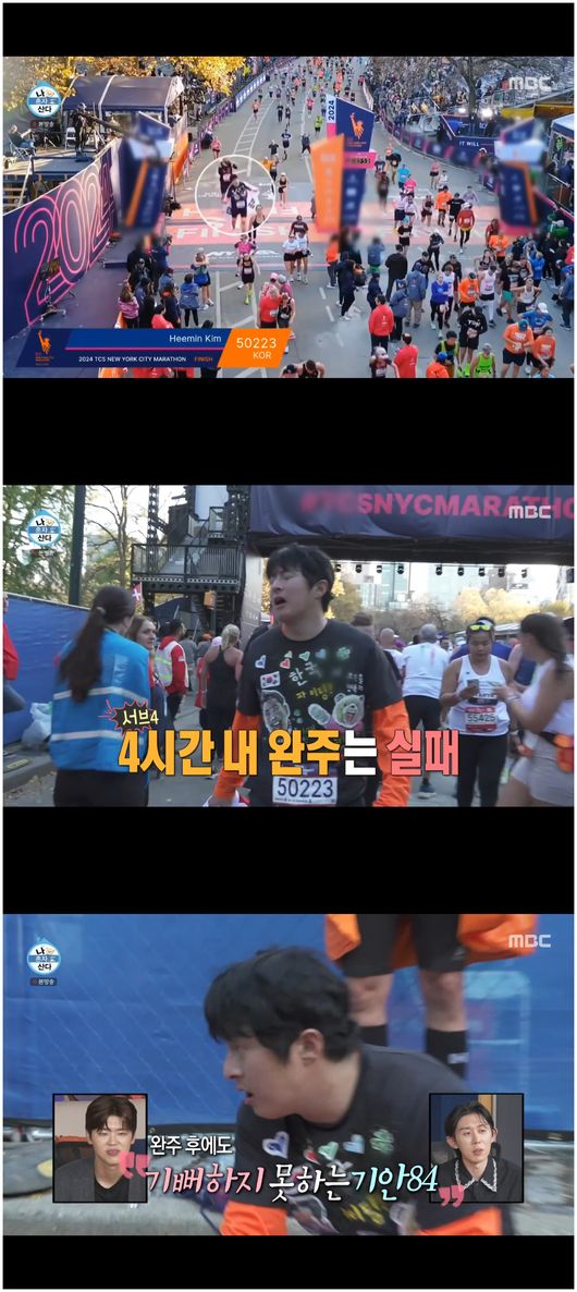 [OSEN=오세진기자]‘나혼자산다’기안84가뉴욕마라톤완주에성공했으나그가목표로한4시간완주기록은도달하지못했다.22일방영한MBC금요일예능‘나혼자산다’에서는기안84가등장했다.뉴욕마라톤참여로한주간녹화에불참했던그는자신의빈자리를느꼈냐며너스레를떨었다.박나래는“기안84가자리를비우지않았냐.한주만에돌아왔다”라며그를반겼다.스탠튼아일랜드,브루클린,퀸스,맨해튼,브릉크스다섯개의자치구를통과하는뉴욕마라톤은세계6대마라톤중하나였다.기안84는“국제마라톤중가장힙한곳이다”라면서수속을밟으러갔다.그는“디지털MZ들은모르겠지만예비소집일이라는게있다.수능전날학교를가는기분이었다.행정착오가일어나지않았구나,내가내일여기서뛰는구나,나는완벽하게뛸거다”라며각오를다졌다.기안84는꼼꼼하게코스를짚었다.그는“그래도청주마라톤에비하면낫다”라며자부했다.그의목표는4시간안에42.195km를돌파하는것이었다.무려1년동안훈련을해왔다는그는나름대로자신감이붙어있었다.시작전,기안84는“시작지점에간다는게생각보다대단했다.삼국지적벽대전의병정이된기분이기도하고,옥황상제앞에심판받으러가는저승길같기도했다.규모가그만큼대단했다”라고말했다.시작하자마자많은이의환호를받으며,그를응원삼아달리던그는5km가되기전에배가아픈고통을겪어야했다.그래도그에게는훈련이라는믿음이있었다.기안84는“이번에는출발할때오히려좀긴장도됐지만,여유로웠던거같다.나자신과의약속을지키려고했다.뭔가를지키려고이렇게열심히해본게처음이었다”,“30km를뛰는데2시간50분이걸렸다.몸이좀올라오는구나싶었다”라고말했다.타국에서의도전은그러나쉽지않은일이었다.시차적응,전날잠을이루지못한것,감기기운까지겹쳐기안84를괴롭혔다.기안84는“체력이좀딸리다.하프도아닌데벌써퍼진다”라며걱정스러운기색을보이다가결국“배가왜아프지.빵을좀많이먹은것같다.조금만천천히가야겠다”라며속력을낮췄다.이어30km가돌파하면서,죽음의다리를거쳐온그는구토에실신까지이르렀다.기안84는“때려죽어도걷지말아야지다짐했다.걸으면두번다시뛰기힘들다”라면서자신의모습을보며괴로워했다.결국멈춰선기안84는“아,이상하다.어휴씨”라며고개를절레절레저었다.그는“좋았을때페이스를생각하니까너무화가나더라”라고말했다.결국교민이쥐어준태극기를끌어안고완주에성공한기안84.그는“30km가넘어가면사지의신비가온다.사지가아프고,목디스크도아프고,하늘은노래지고,그렇다.몸이내뜻대로안움직인다”라면서“나자신한테화가나더라.두번째마라톤은멋있게뛰고싶었다.내가준비한만큼못뛰었다.근데그게실력이었다”라며덤덤하게결과에승복하는모습을보였다./[email protected][사진]MBC금예능‘나혼자산다’Copyright©OSEN.무단전재및재배포금지.