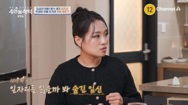 정지선셰프.사진ㅣ채널A‘4인용식탁’방송캡처정지선셰프가유산의아픔을전했다.정지선은지난4일방송된채널A‘절친토큐멘터리-4인용식탁’(이하‘4인용식탁’)에출연해자신의인생을들려줬다.이날방송에서정지선은여경래셰프,개그맨정준하,가수별을절친으로초대해이야기를나눴다.정지선은“제가올초에갑자기찾아온친구가있었다.2세가생겼다가9주차에보냈다”며유산사실을조심스레밝혔다.이어정지선은“신랑이너무기대하고,아들도기대하고양쪽부모님다기대했는데너무죄송했다.누구한테이야기할사람이없었다”고말했다.정지선은제작진과의인터뷰에서“수술하고일을하며1주일내내가만히울면서지냈다.누구한테표현한적이한번도없었다.아들한테이야기했는데,생각보다너무좋아해서완전공주가된느낌이었다”고고백했다.정지선은“마흔살넘어서생긴아이라그런지생각보다약했던것같다.아니면제가너무일을했던가,아무런소식이없어서병원에갔더니뱃속아이가숨을안쉰다고했다”고설명했다.그러면서“되게충격을받고어떻게해야하지라면서1시간동안가만히앉아있었다.당장스케줄이있어서이틀후에수술을하게됐다.당일에수술할시간이없었다.수술하고나서가족들에게미안하다고했다”고당시를떠올렸다.정지선은“신랑에게제일먼저이야기를했는데,울먹이더라.‘괜찮아’라는말을듣고싶었는데그때‘괜찮아’라는말을못들었다.아들은완전통곡했다.속상했다”며눈물을보였다.정지선은이용우씨와결혼해슬하에아들을두고있다.그는넷플릭스오리지널시리즈‘흑백요리사’에출연해유명세를탔다.[지승훈스타투데이기자]Copyright©스타투데이.무단전재,재배포및AI학습이용금지