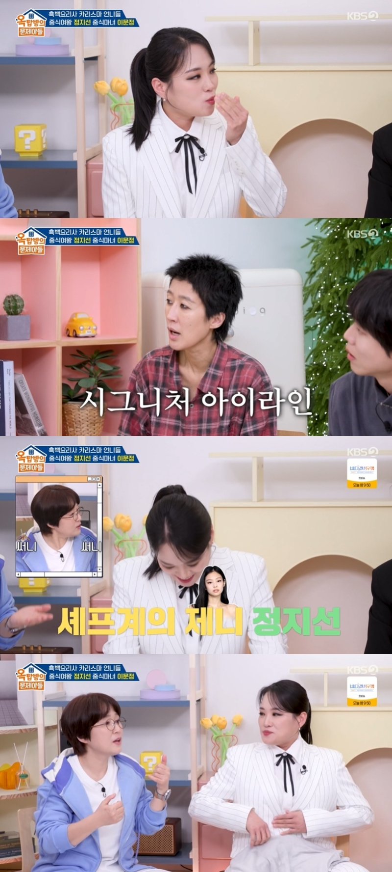 <리뷰:방송시청후작성된리뷰기사입니다.>[OSEN=오세진기자]‘옥탑방의문제아들’중식마녀이문정셰프의실물미모에모두가감탄했다.26일방영한KBS2TV예능‘옥탑방의문제아들’에서는정지선,이문정셰프가등장했다.각각넷플릭스오리지널'흑백요리사'시리즈에각각시즌마다유명해진중식계여성셰프로이들은선후배관계였다.홍진경과주우재는이문정셰프의실물미모에감탄했다.그들은드물게출연자의외모에"예쁘시다.진짜예쁘시다"라며직설적으로말할정도로놀라워했다.닮은꼴을묻자이문정세프는“신은경씨젊었던시절닮았다고하더라”라면서웃더니“그런데사실1초라도이영애씨닮고싶다”라며쑥스럽게웃었다.이에앞서추성훈느낌이난다는소리를들은정지선은조금서운한티를내웃음을안겼다./[email protected][사진출처]KBS2TV예능‘옥탑방의문제아들’Copyright©OSEN.무단전재및재배포금지.