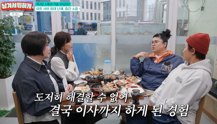 방송인이영자와박세리,층간소음고충토로해(MHN김소영기자)방송인이영자가과거극심한층간소음항의로인해정든집을떠나야했던가슴아픈사연을고백했다.20일방송된tvNSTORY'남겨서뭐하게'에는이영자,박세리,이금희,양소영이출연해층간소음사연에대한이야기를나눴다.이날이영자는과거일산거주당시겪었던층간소음갈등을회상했다.그는"조금만움직여도아랫집에서바로올라오더라.내가이미슬리퍼를신고있는데도억울하게슬리퍼를사다주기까지했다"며당시의황당했던상황을떠올렸다.이어이영자는"한때는노이로제에걸려집안에서가운데로걷지못하고벽을짚은채옆으로만다녔다"고밝혀충격을안겼다.극심한스트레스를견디다못한이영자는지인인송은이와김숙을집으로초대해현장을확인시키기도했다.그는"친구들에게'벽잡고오라'고당부했는데,움직이자마자바로초인종이울렸다"며"소음의원인이우리가아닌것같다고설명도해봤지만해결이되지않았다"고덧붙였다.결국이영자는"연예인이다보니더큰문제를만들고싶지않아이사를선택했다.정말살수가없었다"며고통스러웠던심경을전했다.한편함께출연한박세리는현재윗집소음문제를겪고있다고전했다.박세리는"매일은아니지만새벽에소음이들릴때가있다"며"너무심하면직접찾아가볼까진지하게고민한적도있다"고토로해층간소음이현대인들에게얼마나큰고충인지를다시한번실감케했다.사진=tvNSTORY,MHNDBCopyright©MHN.무단전재및재배포금지.