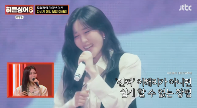 '히든싱어8'방송방송시청후작성된리뷰기사입니다.[OSEN=최지연기자]다비치이해리가자신의모창실력자를본적없다고고백했다.21일방송된JTBC‘히든싱어8’에는다비치이해리가네번째원조가수로나선가운데자신을따라하는사람을한번도본적없다며모창실력자들과의대결을기대해눈길을끌었다.이날전현무는"히든싱어최초여성듀오의메인보컬"이라고이해리를소개,이해리는"대한민국첫장수듀오첫째다.'히든싱어'를언젠가한번하겠다는생각을하긴했는데이렇게나오게되어서너무떨린다"고전했다.'히든싱어8'방송이에전현무는"오늘정말잘하셔야한다.'히든싱어'역사상오늘이역대최다관중"이라고설명했다.전현무의말처럼2층까지꽉찬관객이다비치를반겼다.이해리는"내모창을하는사람을한번도본적이없다.'따라할건덕지가없나'라는생각을한다"며"발음도되게정확한편이고목소리에특징이나포인트가없어서그렇다는생각을한다"고말했다.전현무는"노래가어려워서그렇지목소리에특징이없는게아니다"라며"정확히그렇게말했던윤하도모창실력자에게져서떨어졌다"고말해놀라움을자아냈다./[email protected][사진]'히든싱어8'방송Copyright©OSEN.무단전재및재배포금지.