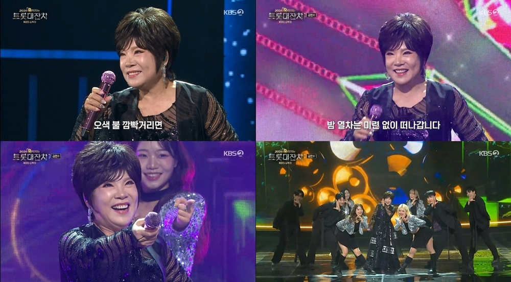 KBS2‘2026복터지는트롯대잔치’방송캡처가수김연자가명불허전의가창력과따뜻한무대매너로설연휴시청자들을매료시켰다.김연자는17일방송된KBS2‘2026복터지는트롯대잔치’(이하‘트롯대잔치’)에출연해레전드다운압도적인아우라를발산했다.김연자는후배가수신유와함께자신의대표히트곡인‘수은등’무대를선보였다.두사람은완벽한호흡으로깊이있는감성을전달했다.김연자특유의파워풀하면서도섬세한보컬이감동을전했다.무대후김연자는“새해복많이받으세요”라는다정한인사와함께무대위에서직접큰절을올리며시청자들을향한감사의마음을전했다.김연자의진심어린모습이훈훈함을자아냈다.이어김연자는분위기를반전시켜‘밤열차’를열창하며현장의흥을최고조로끌어올렸다.김연자의시원한고음과폭발적인성량이분위기를극대화했다.‘쑥덕쿵Remix(리믹스)’무대에서는김연자의지치지않는에너지가돋보였다.김연자는흥넘치는가창력과화려한퍼포먼스로‘트롯퀸’의압도적인카리스마를증명했다.자타공인‘트로트여왕’김연자는지난해‘쑥덕쿵Remix(리믹스)’,영탁과함께한‘주시고(JuicyGo)’를발매했다.최근TVCHOSUN‘미스트롯4’마스터로활약하는등현재다양한방송,공연과공익캠페인무대를통해활발한활동을이어가고있다.최근에는고향광주에노래비가세워지며음악인생에또하나의의미있는기록을남겼다.김연자는오는20일TV조선‘금타는금요일’에출연하며열일을이어간다.손봉석기자[email protected]©스포츠경향.무단전재및재배포금지.