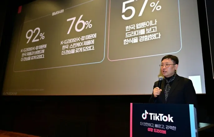 정재훈틱톡코리아운영총괄.2025.12.18./사진제공=틱톡코리아정재훈틱톡코리아운영총괄은"틱톡은소셜미디어가아닌콘텐츠플랫폼"이라며"직관적인편집도구와다양한배경음악,재미있는효과등영상을찍어바로편집하고업로드할수있는강력한기능을가지고있어이용자를수동적인소비자가아닌함께트렌드를만들고확산하는창작자로만든다"고말했다.정총괄은18일서울강남구CGV청담씨네시티에서열린미디어데이에서이같이말하며"틱톡은누가만들었나보다무엇을만들었냐가중요한공간이다.팔로워수가적어도바이럴잠재력이높은콘텐츠를만들면전세계에도달할수있다.틱톡의콘텐츠는소비로끝나지않고재창작되면서틱톡을강력한문화플랫폼으로만들어준다"고했다.정총괄은"틱톡에서한국문화의확산은올해도계속됐다"며"한국문화의전반적인확산흐름에틱톡이기여하고있다는사실이매우자랑스럽고기쁘다"고했다.정총괄에따르면미국소비자의86%,동남아소비자의76%가틱톡을통해한국문화에대해더많이알게됐다고응답했다.동남아소비자의92%가K드라마와K팝을계기로한국제품과브랜드에관심을갖게됐다고응답했으며76%는한국스킨케어제품에관심을갖게됐다고답했다.정총괄은"최근3년간생성된K컬처관련해시태그게시물중절반이상이최근12개월이내에생성됐다"며"K뷰티,K스킨케어,K패션,K푸드,K팝등의해시태그가큰인기를끌고있다"고말했다.이어"BookTok해시태그영상도올해1~11월전년동기대비2배가량성장해약3800만건의영상이만들어졌다"고덧붙였다.매티린틱톡코리아글로벌비즈니스솔루션제너럴매니저.2025.12.18./사진제공=틱톡코리아틱톡은이날콘텐츠를더안전하게즐길수있도록하는장치들도소개했다.양수영틱톡동북아신뢰와안전팀파트너십매니저는"신뢰와안전분야에매년약20억달러(약3조원)이상을투자해왔다"며"개인정보보호와보안을위한기술적인투자나콘텐츠의심사나관리를위한기술개발및담당인력의전문화같은기본적인인프라투자와플랫폼안전규정,기능개선및디지털리터러시능력향상을위한외부전문가와의협력등이포함된다"고말했다.틱톡에따르면올해2분기기준규정위반으로삭제된콘텐츠의99%이상이사용자신고이전에선제감지됐다.틱톡은16세미만계정은자동비공개설정했고다이렉트메시지기능을제한했다.16세미만계정에서생성된콘텐츠는다운로드및추천피드노출이제한되며18세미만청소년계정에는일일60분기본스크린타임한도를적용했다.또'패밀리페어링'기능을운영해보호자가안전·웰빙관련20개이상의설정을직접조정할수있다.매티린틱톡코리아글로벌비즈니스솔루션제너럴매니저는"결국중점은한국파트너들과셀러들이저희플랫폼에서비즈니스를보다성공적으로영위할수있도록돕는것"이라며"내년에는광고나자동화관련신기능을추가로선보여기업들이광고캠페인이나여러프로모션을운영할때보다효과적으로할수있도록도울것"이라고말했다.이정현기자[email protected]©머니투데이&mt.co.kr.무단전재및재배포,AI학습이용금지.