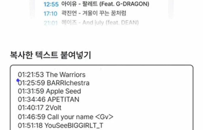 플로'여러곡한번에찾기'…글·사진모두사용가능플로애플리케이션(앱)에서'여러곡한번에찾기'에들어가곡목록붙여넣기를통해플레이리스트를복붙하는장면.2025.6.5ⓒ뉴스1양새롬기자(서울=뉴스1)양새롬기자=가끔그럴때가있다.감명깊게본작품,그중한장면속에삽입돼있는배경음악이문득생각나는순간.그리고이름도모르는그음악은곧머릿속을지배하게된다.올봄극장에서'극장판진격의거인완결편'을재미있게본뒤이런지경에빠지고말았다.그리고정말다행히도,누군가가유튜브에만들어둔플레이리스트를찾았다.조금듣다보니통째로내플레이리스트로옮겨오고싶어졌다.이럴때쓰기좋은기능이SK스퀘어(402340)관계사드림어스컴퍼니(060570)의음악플랫폼플로(FLO)가최근선보인'여러곡한번에찾기'기능이다.여러곡한번에찾기는유튜브등외부에서찾은플레이리스트를플로앱에서간편하게검색하고빠르게내플레이리스트로옮길수있는기능이다.'곡목록붙여넣기(텍스트붙여넣기)'와'캡처이미지로찾기(이미지인식)'가모두가능하다.한번에손쉽게옮겨오고싶어유튜브에서바로'더보기'를눌러화면을캡처했다.'캡처이미지로찾기'를누른다음곡과아티스트이름으로구성된이미지를올렸다.이미지를분석해텍스트를파악하는광학문자인식(QCR)기능을기반으로플레이리스트의곡들을한번에찾아준다.고작10초남짓에캡처한장으로단번에'복붙(복사+붙여넣기)'할수있는것이다.그잠깐도기다리기어렵다면잠시앱을나갔다와도된다.화면이바뀌어도검색결과에지장을주지않는다.플로앱에서'여러곡한번에찾기'에들어가캡처이미지로찾기를통해플레이리스트를확인하고있다.이미지로결과보기를누르면인식에성공한곡에는파란색하이라이트표시가된다.2025.6.5ⓒ뉴스1양새롬기자이렇게결과물이나왔을때'이미지로결과보기'를누르면어떤곡이인식됐는지한눈에확인할수도있다.플로가찾은곡에는파란색밑줄이쳐치는덕분이다.하나하나들어보며제대로담겼는지더블체크하기도쉽다.이후에는재생목록에바로담거나내리스트로저장해나만의'최애곡'을모은플레이리스트로만들수있다.같은플레이리스트를'곡목록붙여넣기'에옮겼더니더빠르게,더많은노래가찾아졌다.32곡짜리플레이리스트를넣어이미지인식으로는8곡을,텍스트붙여넣기로는28곡을찾은것이다.타음악플랫폼에서내보관함을옮겨오기쉽게최적화돼있어서아티스트명과곡명이두줄로돼있어야인식이잘된다는게플로측설명이다.여기서도찾아지지않은노래들은권리사에의해등록된곡명과차이가있는곡들이라고도덧붙였다.그럼에도제목이한자나영어등으로길고복잡하게표기돼있거나,수십곡의플레이리스트를한번에찾아옮기고싶을때유용하겠다는생각이다.초기화를누른뒤횟수제한없이몇번이고다시이용할수있다는점도장점이다.다시한번관련플레이리스트를만들어주신분과,플로에감사를보낸다[email protected]©뉴스1.Allrightsreserved.무단전재및재배포,AI학습이용금지.
