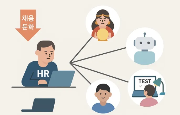 생성형AI가생성한이미지.챗GPT제공경기불황으로채용수요가줄자사람인,원티드랩,인크루트등인적관리(HR)플랫폼기업들이수익성악화에직면했다.HR플랫폼의주수익원은채용공고를노출하고구직자와기업을연결하는광고형모델인데,신규채용이감소하면서매출에도타격이불가피해졌기때문이다.이에따라최근에는데이팅앱,운세서비스,생성형AI솔루션등비(非)채용영역으로사업을확장하며새로운수익원을모색하고있다.채용중심이라는기존정체성에서벗어나,일반소비자를겨냥한서비스로수익다각화에나선모양새다.사람인분기별실적추이.단위:억원.금융감독원제공7일금융감독원전자공시에따르면올해1분기사람인의연결기준매출은280억원으로전년동기(308억원)보다9.1%줄었다.영업이익은20억원으로60%넘게감소하며수익성하락폭이컸다.특히주력사업인커리어플랫폼매출은163억원으로14.2%줄었든것으로나타났다.다른HR플랫폼들도상황은다르지않다.원티드랩은올해1분기연결기준매출이79억원으로전년동기대비11.2%줄었고,영업손실은12억원으로적자폭이커졌다.리멤버운영사드라마앤컴퍼니역시투자확대여파로수익성이악화됐다.올해1분기영업손실은21억원으로,전년같은기간보다두배이상증가했다.HR플랫폼들의수익성악화는채용시장위축과직접적으로맞물려있다.경기불확실성이커지면서기업들이신규채용을줄이고,채용광고나유료인재검색서비스이용도함께줄어든것이다.채용수요가줄면공고게시수자체가줄어들고,자연스럽게광고수익과매칭수수료등플랫폼의주수익원이크게감소하게된다.실제로고용노동부에따르면지난해국내신규채용규모는12만2000명으로2023년1분기이후7분기연속감소세를보였다.인크루트가발표한‘2025년상반기채용동향’조사에서도전체기업중65.6%만이채용계획을세웠다고답해,2023년(79.3%)과2024년(71.3%)보다크게낮아졌다.이런가운데HR플랫폼기업들은생존을위한사업다각화에나서고있다.사람인은최근연애성향분석기반의데이팅앱‘비긴즈’를출시하며일반소비자대상B2C사업에진출했다.자체개발한심리검사를통해사용자의성격과행동유형을분류하고,인공지능(AI)알고리즘으로맞춤형상대를추천하는방식이다.사람인관계자는“얼굴·학력·직장등6단계인증절차와개인정보보호인증도적용해신뢰도를높였다”며“사전공개2주만에10만명이참여하며시장반응도긍정적”이라고설명했다.원티드랩은생성형AI기술을활용한구독형플랫폼‘원티드LaaS’를선보이며채용외수익모델확보에나섰다.다양한대형언어모델(LLM)을손쉽게활용할수있는개발환경과자동화된테스트,검색증강생성(RAG)기반오류제어기능등을구독형태로제공하는구조다.리멤버운영사드라마앤컴퍼니는세일즈마케팅솔루션‘마켓솔루션’을통해B2B사업영역을강화하고있다.신규인맥연결플랫폼‘리멤버커넥트’도출시해커리어기반네트워킹기능을확장하고있다.인크루트는온라인시험관리솔루션‘고사장’을통해에듀테크시장에진출했다.온라인시험생성부터감독·채점까지전과정을지원한다.자체채용시험을운영하는기업이나자격평가기관이주요고객이다.업계는채용시장외에서안정적인수익기반을얼마나확보하느냐가향후사업지속가능성을가늠할지표가될수있다고전망한다.IT업계관계자는“경기변동성이큰채용시장특성상한가지사업모델만으로는지속성장이어렵다”며“기존의인증기반데이터와기술을활용해다양한영역으로확장하려는시도는자연스러운흐름”이라고말했다.유진아기자[email protected]©디지털타임스.무단전재및재배포금지.