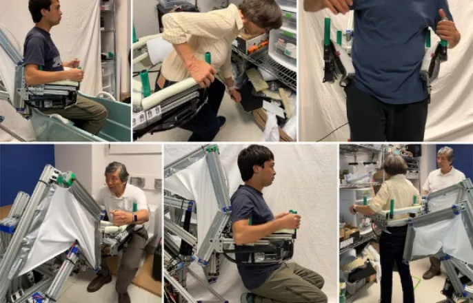 美MIT연구팀,이동돌봄로봇'E-BAR'개발핸들바역할로체중지탱하고자세전환도와낙상인지·대응하면서도하네스없애활동성↑"부피줄이고자율주행추종기술연구지속"[이데일리김범준기자]고령화를넘어초고령사회를맞이하면서노인의일상속안전사고도늘고있다.특히노인사고의절반이상을차지하는낙상(落傷)예방이중요해짐에따라,안전바와지지대역할을하며낙상을방지하는이동로봇이조만간상용화될전망이다.미국매사추세츠공대에서개발중인노인낙상방지이동로봇‘E-BAR’모습.연구팀이(좌상단부터시계방향으로)욕조에들어가거나나오기,몸을구부려물건줍기,균형잃을때몸잡아주기,보행보조,바닥에서사람을일으켜세우기,변기에서전동으로앉는자세전환기능을테스트하는모습.(사진=MITNews)20일미국매사추세츠공대(MIT)소식지에따르면,로보틱스연구팀은노인을물리적으로지원하고낙상을방지하기위해설계한이동돌봄로봇‘E-BAR(E-BodyAssistanceRobot)’를개발했다.E-BAR는사람을뒤에서따라다니는로봇핸들바역할을한다.사용자는독립적으로걷거나로봇의팔에기대어지지할수있다.로봇은사람의전체체중을지탱해일어서거나,자연스러운궤적을따라들어올릴수있다.몸이기울면로봇팔측면의에어백을빠르게부풀려잡을수있다.해리아사다MIT포드공학교수는“많은노인들이낙상위험을과소평가하고번거로운물리적보조기구사용을거부하거나,위험을과대평가하고운동을하지않아이동성이저하될수있다”며“균형장애가있는노인들에게신체를안정시키기위해우리가디자인한핸들바는어디든지이동해필요할때언제든지지원한다”고밝혔다.아사다교수팀은노인을돕기위한다양한기술과로봇보조기를개발했다.낙상예측알고리즘,설계된로봇및로봇워커,웨어러블,자가팽창에어백,하네스로사람을고정하고걸을때함께움직이는로봇프레임등최근몇년동안여러자동화장치를개발했다.이동로봇E-BAR는설계당시물리적지원제공,낙상방지,사람과함께안전하고눈에띄지않게움직이기등3가지작업수행을목표로삼았다.몸을묶는방식인하네스를없애고,사용자에게더많은독립성과이동성을제공하고자했다.E-BAR를디자인한로베르토볼리MIT기계공학과대학원생은“대부분의노인들은하네스나보조장치를착용하는것을좋아하지않는다”며“E-BAR는체중지지,보행에대한적극적인보조,낙상인지등기능을제공하면서도사용자가방해요인없이언제든지구조물에서나갔다가돌아올수있다”고설명했다.연구팀은많은노인및간병인들과인터뷰를바탕으로로봇이문을통과해야하고,사용자가완전히걸을수있어야하며,균형을잡고앉은자리에서서있는자세로전환을돕기위해체중을최대한지탱해야한다는등의여러설계요구사항을제시했다.E-BAR는220파운드(약99.79㎏)의무거운베이스로구성,기울어지거나미끄러지지않고평균적인인간의체중을지탱할수있도록최적화했다.베이스아래에는로봇이필요한경우어떤방향으로든움직일수있도록전방향바퀴를부착했다.로봇의바닥에서뻗어나가는관절형몸체는18개의막대를서로연결해만들었다.접이식크레인처럼재구성해사람을앉은자리에서서있는자세로들어올릴수있고반대경우도마찬가지다.핸들바가달린두개의팔이로봇에서U자형으로뻗어있어추가적인지지가필요한경우그사이에서서기댈수있다.로봇팔은부드러우면서도잡기쉬운소재로만든에어백을내장해,충격시멍이들지않고도즉시부풀어올라사용자를붙잡을수있다.아사다교수팀은“웨어러블기기나하네스를사용하지않고넘어지는사람을잡을수있는로봇은E-BAR가최초”라고말한다.현재버전에서는리모컨으로로봇을조작할수있다.연구팀은향후로봇의기능대부분을자동화해자율주행으로사용자를따라다니며물리적으로보조할수있도록할계획이다.아울러좁은공간에서도활용할수있도록더얇고조작하기쉽게장치를간소화하는연구도진행중이다.김범준([email protected])Copyright©이데일리.무단전재및재배포금지.