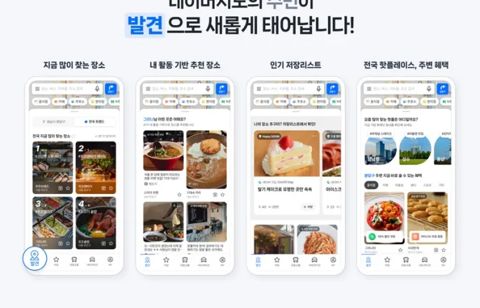 앱하단첫번째영역‘발견’제공전국인기장소를주제별분류해추천플레이스리뷰활용…관심사기반개인화[네이버제공][헤럴드경제=권제인기자]네이버는네이버지도앱에‘발견’탭을새롭게도입한다고19일밝혔다.네이버지도는사용자주변음식점을추천하는것을넘어전국단위인기장소정보와다른이용자들의추천장소까지발견할수있도록지원한다.네이버는지도앱신규업데이트를통해하단부좌측첫번째위치에‘발견’탭을추가했다.해당탭에는▷지금많이찾는장소▷내활동기반추천장소▷인기있는저장리스트▷주변에서바로쓸수있는혜택▷전국핫플레이스등각주제에맞는추천영역에서사용자위치및관심사기반다양한장소를소개한다.신규도입된발견은기존‘주변’탭을한층고도화한서비스다.사용자가확인한시점에다수사용자들에주목받고있는장소정보를즉시제공할수있도록네이버의다양한데이터로인기도를측정해추천정보에반영했다.기존주변탭에서는사용자주변음식점정보만추천받을수있었다면,발견탭에서는사용자가주변은물론전국단위의음식점,문화시설,지역명소등보다폭넓은범주의인기장소정보를손쉽게살펴볼수있게됐다.더불어북촌,강릉,부산,제주등다수사용자사이화제성이높아질경우별도지역단위추천영역으로소개하고해당지역의인기장소도망라해보여준다.경기도성남시에위치한네이버사옥[네이버제공]사용자맞춤형장소추천영역에는플레이스리뷰를통해장소정보를노출한다.사용자는텍스트,사진,클립(Clip)등해당장소를체험한사용자들이직접남긴다양한콘텐츠를참고해취향에맞는장소를발견할수있다.더불어현재사용자가보고있는지도에서추천장소까지의거리도안내하는등정확도를높인것도특징이다.추천영역에서마음에드는장소를저장하거나,바로예약신청도가능하다.‘인기있는저장리스트’는다른사용자들의추천장소목록을통해새로운발견경험을이어갈수있는영역이다.요가,전시,맛집등다양한키워드로구성된저장목록을만나볼수있고,이를별도저장한후참고할수도있다.최근네이버지도를통해개인취향에맞는장소를저장하고별도목록을구성해이를공유하는사용자가늘고있는추세에맞춰새롭게도입한것이다.이외에도사용자주변지역사업장에서제공하는이벤트쿠폰정보를한눈에살필수있도록별도영역을통해제공한다.이를통해네이버는사용자가해당장소로의방문가능성을높일수있도록지원한다.정경화네이버지도리더는“손쉽게장소를탐색하고취향에맞는장소를발견하는경험까지지도앱하나로완결성있게제공하기위해발견탭을새롭게선보였다”며“향후에도네이버지도는오프라인정보를온라인에그대로담아내며,장소검색과탐색편의는물론발견의즐거움까지누릴수있도록차별화한서비스를이어갈계획이다”고밝혔다.Copyright©헤럴드경제.무단전재및재배포금지.
