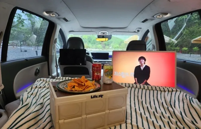 이동반경이넓어졌다.LG전자가4년만에출시한'LG스탠바이미2'는화면과스탠드를분리할수있어보다많은곳으로이동할수있게됐다.벽에걸거나책상에올려두고사용할수도있다.'바퀴달린TV'.무빙휠이탑재된긴스탠드가달린LG스탠바이미는집안어디서든이동할수있는이동식TV로주목받았다.이제집밖으로도나갈수있게됐다.차박이나캠핑등을할때모빌리티공간에서LG스탠바이미2화면부만챙기면된다.LG스탠바이미2를현대자동차대형스포츠유틸리티차(SUV)'아이오닉9'에서사용해봤다.현대차'아이오닉9'에LG전자'LG스탠바이미2'를사용한모습.(사진=김신영기자)◇SUV·전기차와궁합잘맞는LG스탠바이미2'스탠드를분리할수있다'는짧고명료한특징은모빌리티공간에서큰힘을발휘했다.스탠드를분리해차에걸림없이싣고,무게부담도줄일수있었다.캠핑갈때텐트,냉장고등무게를많이차지하는품목이많아운전시묵직함이느껴지는경우가많다.LG스탠바이미2는스탠드를포함해무게가15.2㎏이지만스탠드를제외하면4.3㎏에불과해부담이적었다.SUV라공간이넉넉해차뒷자리를접고LG스탠바이미2를마음껏즐길수있다.LG스탠바이미2는스탠드와분리했을때도구성품인폴리오커버를통해제품을비스듬히세울수있다.폴리오커버덕에차안부피차지를줄이면서도좌식생활을해야하는차안에서편하게즐길수있었다.LG스탠바이미2로예능을보다가배터리부족알림이떠도곧바로충전할수있다.LG스탠바이미2는최대4시간사용가능하다.1박혹은2박이상장기로떠나는여행에서이시간은조금은부족하게느껴질수있다.전기차인아이오닉9에는뒷자리에충전할수있는콘셉트가있어LG스탠바이미2와궁합이잘맞아보였다.캠핑장에서차박·캠핑을하기위해주차된아이오닉9.(사진=김신영기자)◇라이프집서브랜드지향점경험하는고객들최근LG전자커뮤니티라이프집은일부고객을대상으로LG스탠바이미2를아이오닉9에서체험해보는행사를진행했다.62만명이넘는라이프집회원이일상에서자연스럽게'LG전자'라는브랜드를경험하게하기위한활동의일환이다.회원중2030세대비중은70%이상으로LG전자잠재고객이포진돼있다.라이프집은행사를통해봄을맞아감성봄피크닉,차박캠핑등을해볼수있는경험을제공했다.LG스탠바이미2와아이오닉9뿐만아니라고객경험을극대화할수있도록캠핑용냉장고,커피포트,텐트등관련용품도함께대여했다.행사에참여한고객은체험이후커뮤니티에체험후기를기록하며다른고객과경험을공유했다.LG전자관계자는“회사가'스마트라이프솔루션기업'으로변모하고있는가운데,홈라이프스타일커뮤니티를지향하는라이프집도'모빌리티'로공간을넓힌것”이라고말했다.LG전자가'공간과미래를연결'하기위해펼치고있는사업중에는이동공간에서차별화된경험을제공하는모빌리티솔루션도포함돼있다.LG전자모델이차에서LG스탠바이미2를보는모습.◇모빌리티로뻗는LG전자가전LG전자와현대차의제휴체험행사배경에는가전을모빌리티공간으로확대,탑재해맞춤형서비스를제공하고자하는LG전자의비전이담겨있다.LG전자는CES2025에서도AI홈을모빌리티공간으로확장한MX플랫폼을선보였다.MX플랫폼은집처럼차량에도고객라이프스타일에맞춰AI가전과사물인터넷(IoT)기기를조합해만들수있는공간이다.차에기기20여종을탑재해맞춤형고객경험을제공할수있다고소개한바있다.LG전자는가전제품을탑재한별장'어나더빌라',소형모듈러주택'스마트코티지'등의사업경험을바탕으로모빌리티공간으로고객경험확대에나서고있다.LG전자는현대차아이오닉9콘셉트카에의류관리기,신발관리기,냉장고등을탑재했지만실제양산된아이오닉9에는가전이탑재되지않았다.가전이탑재된차량이상용화되지는않았지만,일부고객을대상으로관련서비스를제공하며차별화된모빌리티경험을확대하려는시도로보인다.LG전자는현대차프리미엄차종인제네시스GV80등일부차량에스마트TV플랫폼'웹OS'를공급했다.차량용인포테인먼트이외에가전제품분야에서도현대차와협업을지속할것으로전망된다.김신영기자[email protected]©전자신문.무단전재및재배포금지.