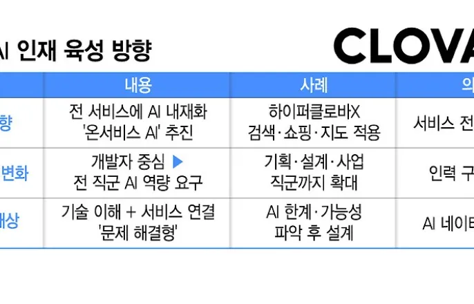 산업전반에AI전환(AX)속도가빨라지면서인력수급에비상등이켜졌다.특히국내AI산업의전초기지인네이버(NAVER)는앞으로5년을'AI가모든서비스에녹아드는시기'로규정하고,개발자뿐아니라기획·사업등전직군에서'AI네이티브'인재확보에사활을걸고나섰다.5일IT(정보기술)업계에따르면네이버는자체대규모언어모델(LLM)'하이퍼클로바X'를검색,쇼핑,지도등전서비스에내재화하는'온서비스(On-Service)AI'전략을추진하며인력수요의구조적변화를체감하고있다.이제기술적구현담당개발자만현장을찾지않는다.네이버관계자는"사용자경험을혁신할기획·설계·사업등비개발직군전반에서AI역량이필수화되고있다"며"단순히AI를도구로쓰는수준을넘어기술의한계와가능성을정확히파악해서비스가치로연결할수있는'문제해결형인재'가가장필요한시점"이라고강조했다.네이버의인재전략은크게'국내육성'과'해외유치'라는투트랙(Two-track)으로움직인다.네이버는2018년부터매년세자릿수규모의신입공채를유지하며국내우수인재를직접육성한다.이는단기적인채용풀확보를넘어'팀네이버'라는이름아래장기적인AI생태계의근간을다지겠다는구상이다.동시에글로벌경력직수시채용을통해전문성을보강한다.네이버관계자는"네이버의방대한데이터를바탕으로기술경쟁력을쌓고대규모사용자대상서비스를직접만들어보는경험은무엇과도바꿀수없는가치"라고설명했다.AI인재양성이중요한건네이버뿐만이아니다.국내주요기업들이AI인재를'직접키워쓰는'전략으로선회했다.삼성전자는'삼성청년SW아카데미(SSAFY)'를통해누적1만여명의수료생을배출하며실무기술인재공급의핵심축으로자리잡았다.카카오는최근지역기반AI교육프로그램을발표하며인재가수도권에집중된구조개선에나섰다.이같은민간의움직임에정부도역대최대규모의지원사격으로화답했다.정부는올해R&D(연구·개발)예산을전년대비11.8%증액한29조7000억원으로편성,AI를포함한3대게임체인저기술에집중투자를약속했다.특히'AI직업훈련수혜자100만명양성'을목표로범부처AI인재양성프로젝트를통해청년·산업인력의역량강화에나선다.우수인력확보는이미국경을넘어선'국가대항전'이됐다.일본경제산업성과국립연구소(REITI)등에따르면일본은AI·로봇산업확산으로2040년까지전문인력이약339만명부족할것으로전망했다.글로벌인재쟁탈전이격화되면서국내우수인력의해외유출우려도커지는상황이다.업계에서는정부의지원책이단순교육을넘어우수인재가국내에안정적으로뿌리내릴수있는'실질적생태계'조성으로이어져야한다는목소리가나온다.업계관계자는"글로벌인재들이한국을매력적인연구기지로인식하게하려면기술적성취와기업의투자가조화를이뤄야한다"며"정부의예산지원이우수인재들의국내정착을돕는실질적인토양이될수있도록해야한다"고말했다.김평화기자[email protected]©머니투데이&mt.co.kr.무단전재및재배포,AI학습이용금지.