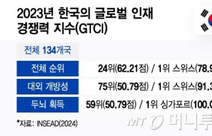 [MT리포트-美인재엑소더스기회다]④'해외매력도'낮은한국,개방성이숙제[편집자주]고급인력의'블랙홀'미국이트럼프행정부출범이후외국인학생·연구자를배척하면서전세계적으로'인재유치전쟁'이불붙었다.세계각국의고급인재유치를위한법제도개선과자본투입등활동을점검하고,우리나라의경쟁력과해외인재유치를위한개선과제는무엇인지진단한다.2023년한국의글로벌인재경쟁력지수(GTCI)/그래픽=윤선정"한국은국제적가시성을더높일필요가있습니다."국내연구기관에서책임급으로근무하다지난해미국으로자리를옮긴한유럽계연구자의제언이다.그는한국만큼국가연구인프라가잘갖춰진국가도,연구에대한열정이큰연구자집단도드물다고평가하면서도R&D(연구·개발)기획및평가가대부분한국어로진행되는탓에외국인연구자로서어려움을겪었다고했다.그러면서"R&D기획단계부터해외학자의참여를늘리고전과정에영어를적극적으로활용해야국제적가시성이높아진다"고했다.한국의취약한'개방성'은프랑스경영대학원인시아드(INSEAD)가매년발표하는'글로벌인재경쟁력지수(GTCI)'에서도드러난다.GTCI는각국의인재유입정책과환경적역량을평가한다.한국은2023년처음으로세계25위권안에들었다.전체평가순위는24위로일본과중국보다앞섰지만,정작해외인재및기업유치에유리한환경인지를보는'대외개방성'은전체134개국중75위에머물렀다.인재유치도를평가하는'두뇌획득'(BrainGain)점수는10년전인2013년보다13점하락한50.79점으로59위를기록했다.IMD(스위스국제경영개발연구원)의'세계인재순위2024'보고서에서도유사한결과가나왔다.한국의인재경쟁력순위는2년연속상승해전세계26위였지만,해외인재풀(pool)활용도를매기는'매력도'측면에서는100점만점에47.86점이라는낮은성적표를받았다.이같은결과는역시한국연구시스템의'낮은해외개방도'라는게전문가들의지적이다.STEPI(과학기술정책연구원)는지난해11월정책제안서인'과학기술정책브리프'를통해"정부R&D지원시스템을수월성,개방성중심으로개편해야한다"고제언했다.특히연구제안서식을영문화하는등국내R&D시스템을국제규범에맞게재정비하는한편해외학자의과제심사및평가과정참여도를현행보다크게늘려야한다고봤다.또"두뇌획득을위한국가간경쟁은여전히진행중이며경쟁의본질은불변한다"면서"한국이보유하고있어야할핵심분야의연구자명단을작성한후가능한모든수단을동원해이들을유치하고,다시해외로유출되지않도록정책을구현해야한다"고강조했다.박건희기자[email protected]©머니투데이&mt.co.kr.무단전재및재배포,AI학습이용금지