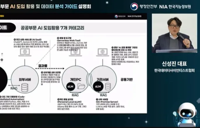 재난문자번역·업무인수인계·설문분석등10개기관PoC사례공개[아이뉴스24윤소진기자]“재난문자번역오류는어떻게줄일수있나요?”“내부망이라AI를못쓰는데,대안이있을까요?”“설문분석·보고서작성에너무시간이걸립니다.”공공부문AI도입을둘러싼현장의질문은기술가능성보다보안·환경·예산이라는현실적제약속에서어떤업무를어디까지효율화할수있느냐에모이고있다.이에정부는행정현안을중심으로한개념검증(PoC)사례를공유하고,기관여건에맞춘단계적AI도입방향을제시했다.신성진한국데이터사이언티스트협회대표가19일오후온라인으로진행된‘2025년공공부문AI도입·활용및데이터분석가이드설명회'에서발표하고있다.[사진=NIA]한국지능정보사회진흥원(NIA)은19일‘2025년공공부문AI도입·활용및데이터분석가이드설명회’를온라인으로열고,중앙부처·지자체·공공기관을대상으로AI·데이터기반행정역량강화PoC컨설팅결과를공개했다.이번설명회는2025년6~10월,약5개월간진행된컨설팅을바탕으로,대규모예산이나전면시스템구축없이도업무생산성을개선할수있는현실적인AI도입방식을공유하는데초점을맞췄다.NIA는이기간중앙부처와지자체등10개기관의AIPoC과제를수행했다.행정안전부재난정보통신과는기존번역기의오역문제를해결하기위해번역API와생성형AI를결합한하이브리드번역모델을적용했다.번역초안은기존API로처리하고,AI는의미왜곡이발생할수있는핵심표현만보정하는방식으로정확도와속도를동시에확보했다.대전광역시중구는업무인수인계비효율해소에초점을맞췄다.AI요약·첨삭과챗봇을결합한인수인계지원시스템을PoC로구현해,인수인계문서를조직지식자산으로축적·활용할수있도록했다.대구광역시군위군은폐쇄망환경에서도활용가능한로컬브라우저기반설문분석도구를도입했다.엑셀파일업로드만으로시각화와기본분석이이뤄지고,결과해석과보고서초안작성단계에서만외부AI를연계하는구조다.이를통해보고서작성시간이4.5시간에서45분으로크게단축됐다.“핵심은AI기술이아니라‘문제정의’부터”이들사례의공통점은현장에서가장불편한지점을먼저정의하고,최소기능으로효과를검증했다는점이다.발표를맡은신성진한국데이터사이언티스트협회대표는“AI도입의출발점은기술이아니라문제정의”라며“PoC는AI를쓰기위한사업이아니라불편한업무를해결하기위한실험과정”이라고설명했다.10개기관의PoC과제는초기기획단계에서여러차례수정됐으며,반복·수작업·전달오류등실무문제를세분화해검증했다는설명이다.신대표는또“모든기관이고가의내부LLM을구축할필요는없다”며“엑셀·파이썬·자바스크립트같은기존도구와AI를결합한‘어시스트형자동화’만으로도하루1~2시간의업무절감효과를만들수있다”고말했다.질의응답에서는보안과지자체재정여건에대한우려도나왔다.신대표는“중요한것은AI학습여부보다외부LLM에데이터가노출되느냐”라며“이번PoC는외부에서개발한결과물을내부망으로이관하거나,로컬환경에서구현하는방식으로데이터노출을최소화했다”고설명했다.그는이어“지자체일수록대규모구축보다작은자동화·업무개선과제부터단계적으로검증하는접근이현실적”이라고덧붙였다.NIA는이번사례공개를통해공공부문AI도입을‘작은PoC→성과검증→단계적확산’구조로이어간다는방침이다.검증된사례는향후공공AI공통기반이나범정부서비스로확산하는상향식모델로발전시킨다는구상이다.공공부문‘AI도입·활용사례집’은12월29일부터진흥원누리집과데이터기반행정역량강화누리집을통해공개된다.공공부문AI도입절차요약.[사진=NIA]/윤소진기자([email protected])Copyright©아이뉴스24.무단전재및재배포금지.