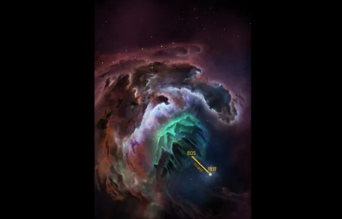 태양에가장가깝게위치한분자운'EOS'의거리를나타낸이미지.한국천문연구원제공.한국연구팀이참여한국제공동연구팀이한국최초천문관측위성인'원자외선분광기(FIM)'를이용해태양에서가장가까운분자구름(분자운)을발견했다.한국천문연구원(천문연)은국제공동연구팀이2003년발사된과학기술위성1호주탑재채인원자외선분광기자료를이용해새로운분자운을발견하고‘EOS’라고명명했다고29일밝혔다.연구결과는국제학술지‘네이처아스트로노미’에28일자로게재됐다.분자운은주로수소분자로이뤄진성간운이다.이번에발견된분자운EOS는태양에서가장가까운분자운으로지구에서약310광년떨어져있다.EOS는태양을둘러싸고있는국부거품경계에위치한다.국부거품은대략300~500광년의크기를갖고있는기체로구성된공간이다.우주에서가장흔하게존재하는수소분자는별이탄생하는지역을찾을수있는중요한원소로원자외선을제외한다른파장으로는관측하기어렵다.원자외선분광기를이용한이번연구에서는전파등다른파장으로는볼수없는분자운의존재를발견했다.소분광방출선으로우리은하분자운을관측하는연구프로젝트EOS연구팀이이번연구를수행했다.천문연연구팀이참여한EOS연구팀은원자외선분광기의원자외선관측자료를통해특이한수소분자운을발견했으며추가로다파장관측자료를활용해EOS의위치,질량,별탄생가능성등을확인했다.연구에참여한조영수천문연책임연구원은“우주에있는다양한물질의분포나상호작용을파악하기위해서는다파장관측이필요한데그동안기술상의한계로원자외선관측시도가적었다”며“원자외선분광기의희소한원자외선분광자료를기반으로한이번연구결과는우리은하별탄생연구에중요한단서가될것”이라고말했다.원자외선분광기개발을주도했던선광일천문연책임연구원은“20년전에관측한데이터가현재시점에서도유용하다는점에뿌듯하고전천(하늘전체)탐사관측데이터의중요성을다시금실감했다”며“곧본격관측을시작하는스피어엑스및K-DRIFT등전천관측우주망원경과함께관련연구를이어나갈예정”이라고전했다.<참고자료>doi.org/10.1038/s41550-025-02541-7●영상설명:태양을둘러싼뜨거운국부거품의3차원형상과그주변을둘러싸고있는다양한기체물질들,이번에발견된분자운EOS관측을위해사용된자료들이동영상으로제작됐다.한국천문연구원제공.[문세영기자[email protected]]Copyright©동아사이언스.무단전재및재배포금지.