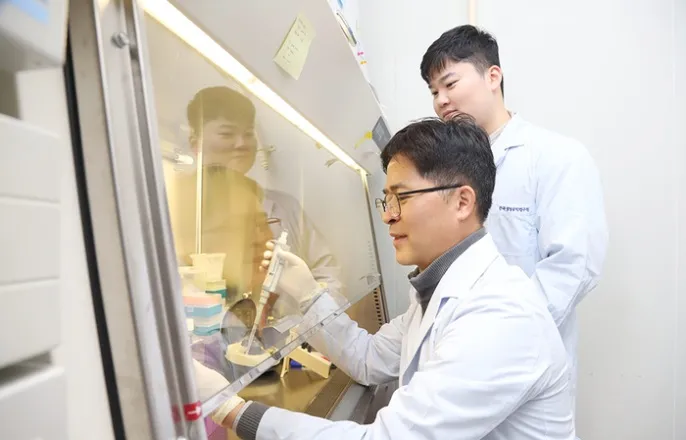한국생명공학연구원(원장권석윤)은조이숙면역치료제연구센터박사팀이암을비롯한난치성질환을효과적으로공략할수있는차세대면역세포인'직접전환NK세포(drNK)'를개발했다고18일밝혔다.NK세포는체내선천면역세포로,암세포나바이러스감염세포를즉각인식·제거한다.이에오랫동안차세대면역항암치료제로주목받아왔다.다만체내에서오래살아남기어렵고,암조직안으로잘침투하지못하며,암세포의강한방어환경에기능이쉽게약화된다는한계가있었다.생명연연구진이면역세포전환기술실험을하고있다.연구팀은한계를극복하기위해NK세포를새롭게만들어내는접근법에주목했다.피부나혈액등에서얻은일반세포(체세포)를다양한세포로분화가가능한줄기세포단계로되돌리지않고곧바로NK세포로전환하는'직접리프로그래밍'기술이핵심이다.NK세포로의분화를억제하는특정유전자(BCL11B)를조절함으로짧은시간안에기능이강화된NK세포를안정적으로생산할수있는기반을마련했다.이렇게만들어진NK세포는기존NK세포에비해암세포인식·공격능력이향상됐다.연구팀은이를'drNK세포'로명명했다.연구팀은drNK세포실제치료가능성을치료가어려운췌장암연구모델을통해검증했다.drNK세포가췌장암세포를보다정확하게찾아공격할수있도록,'키메라항원수용체(CAR)'라는표적인식장치를추가로도입했고,췌장암세포표면에많이존재하는'메소텔린'을인식하도록설계해암세포만선택적으로공격하는맞춤형NK세포를구현했다.이세포는'MSLN-drNK'로명명됐다.또연구팀은암세포자체방어력을약화시키는전략도함께적용했다.췌장암세포가면역공격을회피하는데관여하는단백질인'PKMYT1'을억제하자,암세포가NK세포의공격에더취약해졌고,NK세포와암세포간결합과인식신호도강화됐다.그결과전체적인항암효과가더욱커졌다.연구책임자조이숙박사(사진중앙)를비롯한생명연연구진조이숙박사는“이번성과는치료용NK세포공급기반을넓히는동시에,단일접근만으로는공략이어려운복잡한질환에대해다중요소를결합한맞춤형치료전략이가능함을보여준사례”라며“향후안전성과효율성을더욱높이는후속연구를통해실제적용가능성을확대해나가겠다”고말했다.이번연구결과는'JournalofHematologyandOncology'에11월13일게재됐다.김영준기자[email protected]©전자신문.무단전재및재배포금지.