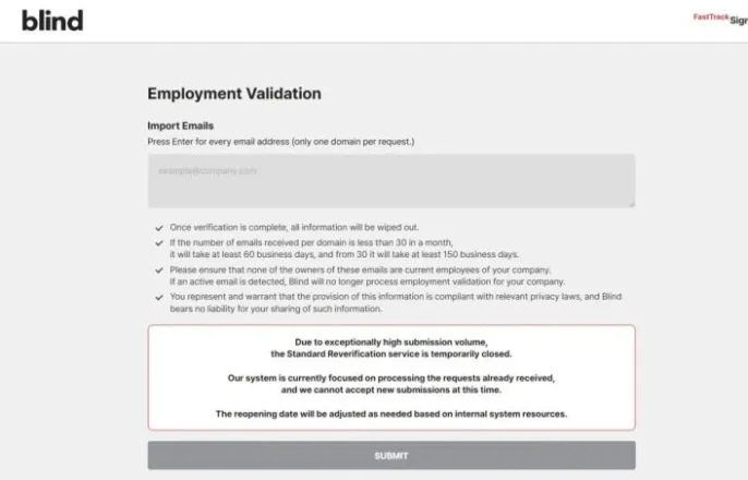 계정삭제신청패스트트랙창구만열어놔블라인드"돈벌이아냐…처리자원부족"#인사팀직원김씨는최근다수의퇴사자계정삭제를요청하기위해블라인드홈페이지에접속했다가깜짝놀랐다.현재접수량이많다는이유로퇴사자계정삭제무료신청페이지를막아놨기때문이다.유료신청은가능했는데가격이5990달러(약870만원)에달했다.블라인드홈페이지내퇴사자계정삭제무료신청페이지가막혀있다.안내글에는'기접수된요청을처리하는데주력하고있어해당서비스를일시적으로종료하며,재개는필요에따라조정될것'이라는내용이써있다.블라인드홈페이지캡처.직장인익명커뮤니티애플리케이션(앱)블라인드가퇴사자계정삭제서비스의유료신청을유도하고있다는지적이나오고있다.6일블라인드는'이미접수된요청을처리하는데주력하고있어해당서비스를일시적으로종료한다'며홈페이지내계정삭제무료신청창구를닫아놨다.재개날짜는'필요에따라조정될것'이라면서따로명시하지않았다가오는23일오전11시예정으로재안내했다.유료로운영되는패스트트랙창구는열어놨다.일반적으로영업일기준60~150일이상소요되는삭제처리를15일이내로단축해주는대신돈(급행료)을받는구조다.이용자가늘면서계정삭제요청건수도증가하자편의를위해만든것인데,접수즉시작업에착수하며환불은불가하다.블라인드는기본적으로회사이메일을인증해야가입할수있다.기업입장에서는퇴사자들이자발적으로재인증을거치지않고계속활동해도막을수가없다.악의적이거나회사를비방하는글을올려도재직자인지식별하기어렵다보니사내분위기에악영향을미쳐도손을쓸수없다.김씨는"퇴사자명단을블라인드측에전달해삭제를요청할수밖에없는구조"라며"재인증과정에서잘걸러지지않아발생한문제인데장치를보완하지는않고기업들의유료신청을유도하고있다"고강조했다.패스트트랙서비스는2018년도입초기에도논란이됐다.애초에무료로시작한서비스인데너무과도한가격을요구하는것아니냐는비판이나왔다.블라인드는해당서비스철회를검토중이라고밝혔으나지금까지도유지하고있다.블라인드측은퇴사자계정처리업무부담이커어쩔수없다면서내부적으로고민이많다고전했다.한번에처리할수있는양이1000건정도로정해져있는데접수량이이보다많으면인력등추가자원이필요하고,결국비용이발생한다는설명이다.북미와인도등블라인드를서비스하는해외국가에도동일하게기준을적용하고있다고했다.블라인드측은"패스트트랙서비스를만들게된계기는희망퇴직같은이슈가있는기업들의니즈를고려한것으로,특정상황에꼭필요할때만이용하도록허들을뒀다"며"기업-소비자간거래(B2C),기업간거래(B2B)를다영위하는입장에서돈을낸기업에만특혜를주려는게아니다"라고해명했다.그러면서"무료신청창구는처리자원확보여부에따라열렸다닫히는구조로,얼마나오래닫혀있는지는그때그때다르다"고덧붙였다.노경조기자[email protected]©아시아경제.무단전재및재배포금지.