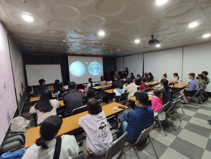 2023년IBS-대전시민천문대공동과학문화행사모습해질녘떠오르는가장밝은별과함께하는과학문화행사가열린다.기초과학연구원(IBS·원장노도영)은기후및지구과학연구단행성대기그룹(CI이연주)이대전시민천문대와함께지구의쌍둥이행성인금성에대해배우고직접관측해보는과학문화행사를29일개최한다고밝혔다.이번행사는IBS와대전시민천문대가협업한네번째과학문화행사다.행사는대전시민천문대주관측실에서이뤄지는금성관측행사와특별강연으로구성됐다.금성이해질녘서쪽하늘에서쉽게관측되는시기임을고려해관측행사는오후17시25분부터진행된다.국내유일금성분야연구책임자(PI)인이연주CI는이날19시30분부터대전시민천문대세미나실에서특별강연을펼친다.지구와금성의구름이야기를주제로열리는이번강연은지구와금성구름의차이를이해하고,구름이덮인금성을우주혹은지구에서볼때어떤모습일지생각해보는내용을담고있다.이연주CI는“금성을맨눈으로도쉽게관측할수있는시기에맞춰금성에대한궁금증을풀수있는자리를마련했다”며“가을밤가족들과함께'미의여신'을덮은구름이불의정체를알아보는추억을쌓는기회가되길바란다”고말했다.행사참가자는대전시민천문대홈페이지를통해선착순50명을받는다.만7세이상이면누구나무료로행사에참여할수있다.김영준기자[email protected]©전자신문.무단전재및재배포금지.
