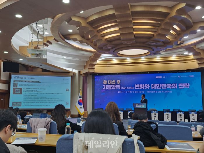 7일'미대선후기정학적변화와대한민국전략'토론회개최첨단분야미우선주의강화전망…글로벌파트너십강화필요미국과AI격차심화우려도…"초격차기술확보시급"목소리7일국회의사당의원회관서'미대선후기정학적변화의대한민국전략'토론회에서이주헌과기정통부전략기술육성과장이발제발표를하고있는모습.ⓒ데일리안김소희기자미국대선이후우리나라는‘초격차기술확보’로대응해야한다는조언이나왔다.세계적으로치열한AI전쟁이발생하고있는만큼우리나라도AI반도체개발을통한기술선도및초격차가필요하다는목소리다.첨단분야에서미국우선주의가더욱강화될것으로전망되면서글로벌전략기술파트너십강화도요구되고있다.이주헌과학기술정보통신부전략기술육성과장은7일국회의사당의원회관에서열린‘美대선후기정학적변화와대한민국의전략’토론회에서“기술패권경쟁흐름에서이번미대선결과가가지는의미는미중갈등이핵심신흥기술패권경쟁으로심화했다는것”이라며“가치공유국간기술,안보등블록화추세가강화할것으로보인다”고예상했다.이과장은트럼프2기정부과학기술정책방향성으로‘미국우선주의’가견고할것으로관측했다.특히AI에대해선강력하게규제완화를하겠다고공언한바있다.미국중심AI산업성장을지향하고있다.국방기술등안보분야에AI를적극활용할가능성도있다.이과장은“트럼프행정부1기때도AI이니셔티브등을통해R&D를지원했다”며“2기집권시AI주도권강화를위한대규모프로젝트가능성이거론되고있다”고설명했다.그러면서“우리기업입장에서는미국AI격차가확대될가능성이있지않냐는우려가나오는상황”이라며“초거대AI개발급격한가속화가이뤄지면우리기업의미국AI서비스시장에진입할수있는장벽이강화될가능성도있다.따라서미국AI기업과제휴등을통한진입전략모색이필요한시점”이라고덧붙였다미국의자국보호주의가더욱강화될것으로전망되면서,우리만의초격차기술확보와글로벌전략기술파트너십강화가절실하다고강조했다.이과장은“전략기술조기성장동력과신산업,미래공급망,안보차원핵심기술등에선제적으로R&D투자가이뤄져야한다.혁신거점과인재확보,세제지원,규제혁신등민간기술혁신지원도필요하다”고말했다.또“글로벌기술안보블록화선제대응하기위해가치공유국과확고한파트너십을구축해야하며,협력국가를다변화해글로벌전략기술블록내핵심국지위를확보해야한다”고부연했다.7일국회의사당의원회관서'미대선후기정학적변화의대한민국전략'토론회에서유회준KAIST인공지능반도체대학원장이발제발표를하고있는모습.ⓒ데일리안김소희자ⓒ유회준한국과학기술원(KAIST)인공지능반도체대학원장은“미국에서는세계최고AI를유지하기위해노력중”이라며“여러통제를통해중국을견제하고있고,동맹국중심으로공급망을재편하고있다”고언급했다.유원장은”우리나라는반도체생태계가거의없다“며”삼성전자와SK하이닉스를제외하면나머지는유명무실하다.반도체관련벤처기업,유니콘기업은거의없는데다중견기업은보이지도않는다“고지적했다.그는”현재삼성과하이닉스만있는현생태계를좀더공고히할필요가있다“며”경쟁력이있도록만들어야하고,세계최고R&D인력정책수립이추진될필요가있다“고강조했다.이어”AI반도체개발을통한기술선도와초격차확보가이뤄져야하며,우리만의기술을공세적으로나갈필요가있다“며”미중갈등이펼쳐지고있지만,그들은서로많은걸주고받고있다.우리나라도거기에동참해야한다.AI반도체를적극수출해야하고,거기서받은이득을가지고유연하게대응해야한다.차세대핵심기술선도를위한초격차,신격차등전략이필요하다“고제언했다.이광형KAIST총장은“미·중을포함한세계주요국간의기술패권경쟁이심화하고있다"며"미대선이후대한민국이나아갈방향은인공지능,반도체와같은필연기술을세계최고수준으로발전시켜과학기술주권을확보하는것이며,이를위해필요한과학기술인재를육성하는것”이라고밝혔다.Copyright©데일리안.무단전재및재배포금지.
