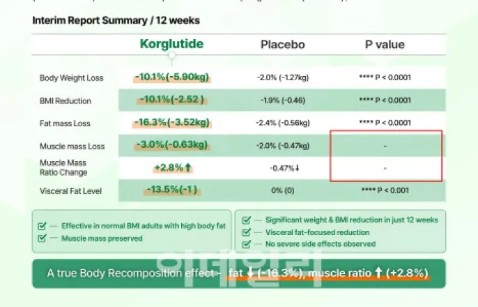 이기사는2025년11월05일09시30분에팜이데일리프리미엄콘텐츠로선공개되었습니다.[이데일리김새미기자]케어젠(214370)이‘경구용GLP-1펩타이드’코글루타이드의정상인대상중간임상데이터를공개했지만근육관련항목의P값이누락돼데이터신뢰성을두고논란이일고있다.‘경구용GLP-1건기식’코글루타이드에업계주목하는이유?30일바이오업계에따르면케어젠이글루카곤유사펩티드-1(GLP-1)펩타이드기반경구형체중감량건강기능식품‘코글루타이드’(Korglutide)의중간데이터를지난28일공개했다.코글루타이드는케어젠이기존GLP-1주사제와달리‘경구용GLP-1건기식’으로개발했다고강조해업계주목을받은물질이다.코글루타이드는최근레바논보건당국에건기식으로정식등록됐다.코글루타이드는앞서진행한비만환자대상임상결과에서‘신약급’체중감소효과를보이며업계에서화제가되기도했다.케어젠이지난7월공개한코글루타이드의비만·제2형당뇨환자100명을대상으로진행한인도임상결과평균체중이9.3kg(10.75%)감소한것으로나타났다.일반적으로체중이5%이상감소하면비만치료제로허가받을수있기때문이다.이와함께케어젠은지난7월부터인도에서체질량지수(BMI)가정상이나체지방률이높은‘마른비만’성인200명을대상으로코글루타이드임상을시작했다.케어젠이이번에공개한해당임상의중간임상데이터에따르면12주경구투여후코글루타이드복용군은평균적으로체중이5.9kg(10.1%)줄고,체지방이3.52kg(16.3%)감소했다.근육량은0.63kg(3%)줄었지만지방대비근육비율은2.8%늘었다.케어젠의‘코글루타이드’정상인대상임상중간결과에서근육관련항목의P값만누락돼있다.(자료=케어젠)여기서눈에띄는점은근육관련항목의P값만기재돼있지않다는점이다.체중,BMI,체지방등다른지표에서위약군대비P<0.001~P<0.0001의높은통계적유의성을확보했다고표기했으나,근육관련P값만빠져있다.더구나지방대비근육비율은2.8%늘었지만근육량자체는3%줄었다는점을감안하면근육관련P값이누락돼있어데이터신뢰성에의구심이제기된다.근육관련항목P값누락한이유는?P값은임상시험이나통계분석에서관찰된결과가우연히발생했을가능성을수치로표현한지표이다.통상적으로P값이0.05이하면통계적유의성이있다고판단한다.임상을진행할경우임상프로토콜에서사전에어떤검정방식으로P값을산출할지정해둔다.근육관련데이터의P값이통계적유의성을미충족했을가능성에대해묻자케어젠은“통계적유의성은충족했다”고답했다.케어젠관계자는“연구소담당자들이모두‘CPHIWorldwide2025’에나가있는데중간결과라P값을안쓴것같다”며“P값이통계적유의성을충족했는데자료마다조금씩다르게기재돼있는등명확하지않아기재를안한것”이라고말했다.이는통계학적·임상개발관행상납득하기어려운해명이라는게업계반응이다.일반적으로P값은임상프로토콜에기반해통계적검정을수행하면항상단일수치로나온다.임상데이터의중간분석단계더라도P값은명확히산출된다는게업계전문가의공통된견해다.업계관계자는“임상시험에서주요변수의P값을기재하지않은것은데이터무결성관점에서문제의소지가있다”며“특히프로토콜에명시된변수라면결과가좋든나쁘든P값이반드시보고돼야한다.특정항목만누락된것은결과가불안정하거나통계처리가제대로되지않았다는신호”라고지적했다.또다른업계관계자는“P값이여러개라는것은마음에들지않는값이나와서검정방식을바꿔가며수치를산출해봤다는의미일수있다”며“P값이잘나왔다면이런시도자체를할필요가없다”고추정했다.“건기식임상이더라도지킬건지켜야”코글루타이드는건기식이기때문에의약품수준의프로토콜을적용해인체적용시험을진행했다하더라도의약품임상에비해엄밀성이떨어질수있다.혹시해당임상이건기식용인체적용시험이라특정항목의P값이누락될수있는것이냐는질문에한전문가는“건기식인체적용시험이라하더라도사람을대상으로진행하는이상최소한의통계적투명성과보고기준은지켜져야한다”고역설했다.케어젠은해당데이터가중간데이터단계라는점을강조했다.케어젠관계자는“12주추가데이터결과는내년초에확인할수있을것”이라며“그때추가데이터를공개할예정”이라고말했다.케어젠은코글루타이드를의약품으로허가받기위한임상을진행할계획은없는것으로확인됐다.대신케어젠은다른물질로비만치료제를개발하기위해동물실험단계의전임상을진행중이라고밝혔다.케어젠관계자는“현재코글루타이드와다른물질로비만치료제전임상을진행중”이라며“전임상내용에대해서는공개하지않는다는방침”이라고언급했다.김새미([email protected])Copyright©이데일리.무단전재및재배포금지.