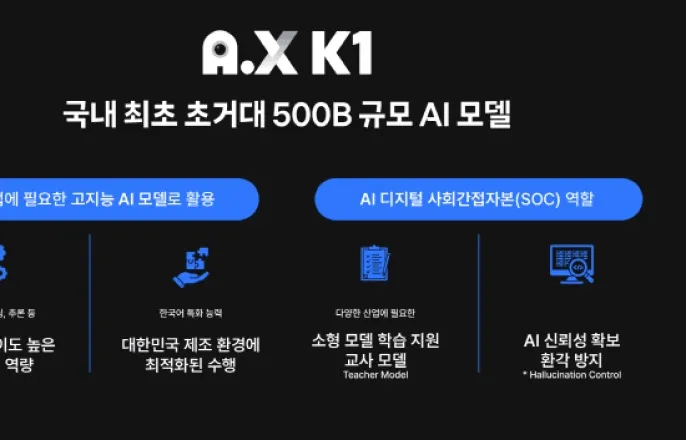 SKT정예팀A.XK1공개,고난이도에이전트작업부터교사모델까지수행(지디넷코리아=박수형기자)SK텔레콤이국내최초매개변수5천억개규모의초거대AI모델'A.XK1'을30일과학기술정보통신부주최독자AI파운데이션모델프로젝트1차발표회에서공개한다.SK텔레콤정예팀의'A.XK1'은국내최초의초거대모델로,미국과중국에이어AI3강경쟁이치열한글로벌무대에서대한민국AI모델이경쟁력을갖추기위한체급으로한단계도약했다는점에서중요한의미를갖는다.A.XK1은총5천190억개의매개변수로구성되며,사용자요청에의해추론작업을할때에는약330억개의매개변수가활성화되는구조다.초거대규모로학습하며필요한경우에는최대한가벼운사양으로동작할수있도록했다.앞선글로벌사례들에따르면500B급이상의초거대모델은복잡한수학적추론과다국어이해같은능력이중소형모델보다안정되고,이를바탕으로고난이도코딩과에이전트작업수행등확장성이큰기능도보다강력해진다.에이전트작업이란인공지능모델이마치똑똑한비서처럼스스로판단하고처리하는기능이다.사용자가일일이지시하지않아도AI가알아서이메일을보내거나문서를만들고,필요할때는사용자에게추가정보를물어보면서최적의결과를만들어낸다.또초거대모델단계부터는단순히지식을소비하는모델이아니라70B급이하모델들에지식을공급하는'교사(Teacher)모델'로서AI생태계를지탱하는디지털사회간접자본역할을수행할수있다.SK텔레콤정예팀은A.XK1이다양한소형·특화모델들에게지식을전수하도록연구를확장,국민의일상과대한민국의산업을혁신하는모델로활용할예정이다.A.XK1은영어를주로사용하는다른인공지능들과달리처음부터한국어로학습하도록설계되어한국어입력을자연스럽게이해할수있다.이런한국어특화능력덕분에대한민국의문화,경제,역사를잘아는국민맞춤형서비스를만드는데적합하다.B2C·B2B양방향확산...국민생활,산업혁신주도SK텔레콤정예팀은대국민AI접근성강화측면에서가입자1천만이상인에이닷을기반으로A.XK1을제공해전국민이전화,문자,웹,앱등다양한방식으로쉽게AI를이용할수있는'모두의AI'환경을구축해나갈계획이다.SK텔레콤정예팀참여사인라이너또한세계적으로1천100만명이상의글로벌가입자를대상으로전문지식검색을운영하면서다국어측면에서도높은정확도와신뢰도의정보검색서비스를제공할수있을것으로기대된다.AI대전환을통한산업경쟁력강화차원에서는▲업무생산성향상을위한에이닷비즈▲기업의생산공정개선을위한제조AI솔루션▲크래프톤의게임AI를통한실시간캐릭터대화및자율행동구현▲AI모델을물리행동영역으로확장한휴머노이드로봇기술등으로활용분야를넓혀나갈예정이다.A.XK1은국내반도체산업의초격차경쟁력을검증하는테스트베드역할도수행할수있을것으로기대된다.AI반도체개발과정에서성능검증에엄청난데이터규모와데이터전송속도가요구되는만큼최신AI반도체성능검증시초거대LLM모델이효율적으로활용될수있기때문이다.SK하이닉스등주요관계사와AI밸류체인완성SK텔레콤정예팀은SK텔레콤,크래프톤,포티투닷(42dot),리벨리온,라이너,셀렉트스타,서울대학교,KAIST등8개기관으로구성됐다.AI반도체,AI데이터센터,AI모델,AI서비스에이르는전체밸류체인을독자기술로구축한'풀스택소버린AI'를완성했다.정예팀은지난2018년부터순수자체개발을진행해온SK텔레콤의LLM개발경험과각기관의고유한전문성을바탕으로모델의완성도를높였다.라이너는전문지식정보검색기술로정확성을,셀렉트스타는대규모데이터구축·검증기술로신뢰성을확보했다.크래프톤은글로벌멀티모달R&D경험으로확장성을,포티투닷은온디바이스AI기술로범용성을,리벨리온은국산NPU기술로효율성을각각담당했다.이렇게완성된A.XK1모델은단순한기술성과에그치지않고SK그룹사와컨소시엄참여사를중심으로확산되며,나아가대한민국산업전반에큰파급효과를미치게될것으로기대된다.이미SK하이닉스,SK이노베이션,SKAX,SK브로드밴드등주요관계사,최종현학술원,한국고등교육재단을포함하여20여개기관이참여의향서를제출,실제현장에서의활용과검증을함께하기로했다.SK텔레콤정예팀은A.XK1을국내AI생태계의다양한기업들에오픈소스로개방할계획이다.주요개발커뮤니티및SK텔레콤서비스를통해오픈소스와API를공개하고,국내기업대상AI에이전트개발환경을제공한다는방침이다.또한AI모델구축을위한통합적지원체계구축과함께모델개발에활용된학습데이터의일부를공공과민간플랫폼에공개해국내AI생태계전반의경쟁력강화에기여할예정이다.김태윤SK텔레콤파운데이션모델담당은“국내최초매개변수500B급모델개발로치열한글로벌경쟁속에서대한민국의글로벌AI3강도약을위한새로운전환점을마련했다”며“앞으로도국가대표AI기업으로서모두의AI를달성하기위한노력을지속할것”이라고밝혔다.박수형기자([email protected])Copyright©지디넷코리아.무단전재및재배포금지.