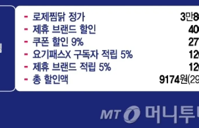 [다시뛰는요기요]②1번만주문해도'본전'…신규구독자107%·신규회원56.8%↑요기요무한적립써봤더니…/그래픽=김지영#2만8900원콤비네이션피자를주문하면서각종할인9450원과적립1946원등정가의39.4%를혜택으로받았다.찜닭도29.8%싼값에주문했다.요기요의깜짝이벤트'무한적립'의이야기다.'두찜','호식이두마리치킨','피자헛','롯데리아'등추가적립을받을수있는제휴프랜차이즈도다양하다.━최소주문금액없이적립금사용…네플스결합시'공짜'━26일요기요는무한적립이벤트직후2주(12월8~22일)간유료멤버십인'요기패스X'의신규구독자수가직전2주(11월24일~12월7일)대비107.0%증가했다고밝혔다.요기요의신규회원수는같은기간56.8%증가했다.지난8일선보인무한적립은요기패스X구독자에게할인액을제외한음식값의5%(미구독자는1%)를적립해주는이벤트다.제휴프랜차이즈는5%적립이추가된다.현재선착순마감됐지만한때페이코포인트결제시3%적립이추가돼적립률만총13%에육박했다.배달업계에서통용되는쿠폰할인과달리최소주문금액없이사용할수있다는게강점이다.당초12월한정진행으로기획됐으나효과가커서내년1월까지연장키로했다.다만적립액은30일내사용해야한다.요기패스X구독료는월2900원.배달비(통상2000~3000원)가무료라한번만주문해도구독료가'본전'이되는셈이다.특히네이버구독상품'네이버플러스멤버십'구독자라면요기패스X구독료는무료다.여기에12~1월무한적립혜택이추가되면서신규회원수가급증했다.요기요는GS더프레시,이마트에브레데이등에서식료품,생필품,간편식등을구매할수있는퀵커머스'요마트'로무한적립적용범위를확대할계획이다.장보기수요가높은주부가입자이용률증가가기대된다.━무한적립직접써보니…혜택40%육박━피자헛콤비네이션피자라지사이즈(2만8900원)에무한적립을받은예시./사진=이찬종기자무한적립을직접이용해봤다.피자헛에서콤비네이션피자라지사이즈(2만8900원)를선택하자제휴브랜드할인8000원이적용됐다.1만8000원이상주문해쿠폰할인5%(1450원)가추가됐다.할인된금액(1만9450원)에요기패스X적립5%(973원)와제휴브랜드적립5%(973원)가쌓였다.페이코포인트결제적립3%는받지못했지만혜택이총39.4%(1만1396원)에달했다.찜닭프랜차이즈두찜에서도비슷했다.3만800원인'로제찜닭'을주문하면서제휴브랜드할인4000원을받았다.2만5000원이상주문해쿠폰할인9%(2770원)가추가됐다.할인된2만430원에요기패스X적립5%(1202원),제휴브랜드적립5%(1202원)를받았다.총29.8%(9174원)를돌려받았다.제휴프랜차이즈가아닌경우에도요기패스X적립5%(미구독자1%)는그대로적용받을수있다.여기에페이코,카카오페이,네이버페이등결제·카드사제공혜택은별도다.요기요관계자는"무한적립은대형프랜차이즈중심인쿠폰할인과달리소규모개인가게에도적용돼지역상권활성화가기대된다"며"고객과자영업자모두에게도움되는건강한배달앱생태계를위해노력하겠다"고말했다.이찬종기자[email protected]©머니투데이&mt.co.kr.무단전재및재배포,AI학습이용금지.