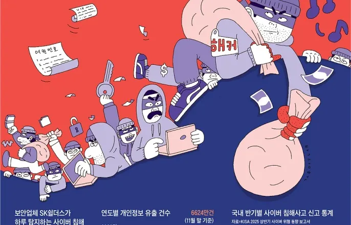 기업,보안투자소홀해쉽게뚫려해커들,해킹시험무대삼아공격北은지속적으로스파이앱유포“해커들에게는드나들기쉽고,울타리까지낮은보물창고나마찬가지입니다.”국내보안업계임원이우리나라기업들의보안시스템을두고한말이다.세계최고의IT인프라를갖추고,특정기업에개인정보가집중되어있지만,보안은취약하다보니해커들의주요공격대상이된다는것이다.그래픽=박상훈한국은전세계적으로도빠르고넓은인터넷인프라를갖췄다.OECD(경제협력개발기구)회원국중5G(5세대이동통신)인프라1위,다운로드속도1위다.스마트폰보급률도98%로세계1위다.행정서비스도디지털화가잘돼있다.스마트폰으로등본을떼고세금을납부하는시스템은해외에서도벤치마킹을할정도다.하지만보안의식은이에걸맞지않다.테크업계관계자는“한국은중요한개인정보디지털화가잘돼있고특히이러한데이터가소수대형사업자에게몰려있다”며“올해국내1위통신사인SK텔레콤과전자상거래1위쿠팡단2곳에서만유출된개인정보가5694만건에달한것이대표적”이라고했다.기업들이보안투자에소극적인것도문제다.김명주서울여대지능정보보호학부교수는“기업들이보안사고가없으면보안·관리예산을지속적으로삭감한다”며“플랫폼규모가커질수록보안인프라투자를늘려야하는데거꾸로가고있다”고했다.보안회사안랩은지난달펴낸2025년사이버위협동향보고서에서“한국에사이버공격이집중되는것은높은IT의존도와디지털자산가치,글로벌평균대비낮은정보보호투자비율을꼽을수있다”고분석했다.또랜섬웨어협상비용지급에대한인식과미국외지역을공격할경우미국FBI같은수사기관감시를피할수있다는점도한국을노리는이유로꼽았다.특히한국은랜섬웨어등사이버범죄를많이저지르는3국인북한·중국·러시아사이에끼어있어지정학적으로도해킹이몰리는지역이다.지난2일북한정찰총국산하해킹그룹김수키와연관된것으로추정되는악성코드가국세고지서파일로위장해유포됐고,지난달국내최대가상화폐거래소업비트에서발생한445억원규모해킹사건도북한배후의해커조직인라자루스소행인것으로알려졌다.안랩은“북한연계공격그룹이한국을대상으로민감정보를탈취하기위한스파이앱을지속적으로유포하고있다”며“주로파일관리자,문서뷰어앱등으로위장했다가탈취한정보를외부로전송하고,가상화폐탈취까지진행한다”고했다.전세계해커들은한국을해킹의테스트베드(시험무대)로삼고있다.안랩에따르면작년10월~올9월한국은랜섬웨어공격을총53번받아아시아에서인도(116번)에이어둘째로많은공격을받았다.일본(51번),중국(36번)보다많았다.한국을공격한국가를인터넷주소(IP)로분류하면한국(34%)이가장많았고,미국(22%),불가리아(6%),러시아(5%),네덜란드(5%)순이었다.최근전세계를대상으로대규모랜섬웨어공격을자행하는중국과북한비율이낮은이유에대해보안업계는이들이한국이나미국IP로우회하는방법으로위장침투한것으로본다.Copyright©조선일보.무단전재및재배포금지.