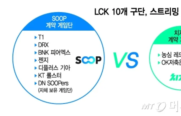 LCK10개구단,스트리밍계약현황/그래픽=김지영SOOP과치지직이e스포츠게임단확보경쟁에나섰다.게임단팬들을시청자로유치하고,록인(Lockin)효과를도모하기위해서다.확보한게임단수는7대2로SOOP이우세한가운데치지직이추격하는형세다.SOOP은최근프로게임단'KT롤스터'와라이브스트리밍계약을체결했다.지난해까지치지직과협업하던곳이다.'디플러스기아'(Dpluskia)도치지직에서SOOP으로이동해3년계약을맺었다.SOOP은두팀소속선수개인방송송출,독점콘텐츠제작등을맡는다.반대로치지직은SOOP으로부터'OK저축은행브리온'을뺏어왔다.파트너가없던'농심레드포스'도모셔왔다.현재인기게임'리그오브레전드'의국내프로리그인LCK소속10개게임단중7개게임단은SOOP과,2개게임단은치지직과계약을맺었다.나머진한팀'한화생명e스포츠'는2024년부터함께해온치지직과동행을이어갈전망이다.SOOP은인기프로게이머'페이커'이상혁이소속된'T1'과3년7개월째협업중이다.T1은유튜브구독자171만명을확보한인기구단이다.이외에도젠지,DRX등인기게임단과3년이상협업하면서신뢰를쌓았다.SOOP은자체e스포츠경기장을3개보유해시너지도노릴수있다.치지직에비해스트리머간경쟁풍토와합방(합동방송)생태계가발달해소속선수들이은퇴후방송활동을이어가기도쉽다.치지직은네이버(NAVER)가운영하는만큼포털파급력이나브랜드이미지면에서우위에있다.중소·신생게임단입장에서는인기게임단이포진한SOOP보다경쟁이덜해기회로삼을수도있다.세계대회EWC(EsportsWorldCup)등e스포츠중계권을독점확보하기도했다.양사가e스포츠게임단을유치하는것은팬들을플랫폼에록인시키기위해서다.프로게이머개인방송을보기위해유입된시청자가e스포츠대회중계를보고,다시개인방송으로유입되는선순환을노린다.스트리밍업계는장기간포화상태인만큼경쟁사시청자를뺏어오는것과내시청자를지키는것이모두중요하다.아이지에이웍스모바일인덱스에따르면2024년2월이후SOOP과치지직의합산월간활성이용자수(MAU)는461만~532만명사이에서오르내리며박스권에갇혀있다.업계관계자는"국내스트리밍업계는'이미볼사람은다보는'만큼추가수요확보가어렵고경쟁이심하다"며"SOOP은확보한게임단을지켜야하고치지직은부단히추격해야한다.어느한쪽도포기하지않을것"이라고말했다.이찬종기자[email protected]©머니투데이&mt.co.kr.무단전재및재배포,AI학습이용금지.