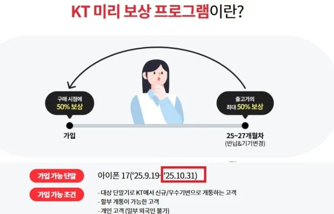 가입2년후최대50%할인받기위해KT로기기변경해야KT“고객소리충분히듣고개선위해조기종료”KT가아이폰17미리보상프로그램가입기간을11월30일까지에서10월31일까지로앞당기기로결정했다./KTKT가아이폰17시리즈를구입하면서2년후기기반납을조건으로출고가를할인해주는‘미리보상프로그램’을지난달31일조기종료했다.지난달10일조선비즈보도(참고’10년전과징금받은‘중고폰선보상’다시고개…KT가입자절반이50대이상‘)를통해미리보상프로그램이이용자의서비스이용또는해지등을제한한다는이유에서다.미리보상프로그램은휴대폰단말기를구입할때할부3년을계약한후2년뒤단말기반납과기기변경을필수조건으로출고가의50%를개통시점에미리할인받는제도다.3일업계에따르면KT는아이폰17에대한미리보상프로그램가입기간을당초공지했던11월30일에서지난달31일로한달앞당기기로결정했다.미리보상프로그램은10년전방송통신위원회가소비자피해우려로과징금을부여,중단시킨‘중고폰선보상제도’와사실상유사한형태라는지적이제기됐다.2015년당시에는단통법이시행되고있었기때문에합법적으로제공하는지원금과별도로지원금을과다지급하는것이문제가됐다.특히중고폰선보상제를고가요금제와연계하는것은물론,사용의무기간을못채울경우위약금으로선보상액전액을일시에반환하도록해논란이일었다.더욱이통신3사는가입자들에게중고폰반납조건에대한고지를소홀히해전기통신사업법을위반했다.결국방송통신위원회는통신3사에대해중고폰선보상제가소비자피해를유발한다며34억200만원의과징금을부과했다.물론중고폰선보상제도가실시됐을당시와달리지금은단통법이폐지됐다.하지만미리보상프로그램은사용자의선택권을제한시킨다는지적이제기됐다.KT미리보상프로그램이용자는서비스가입2년후최대50%할인을확정받으려면KT회선으로기기변경을해야만한다.이용자는24개월약정종료시에도타사로이동이어렵다.또미리보상프로그램월이용료를납부하는사용의무기간(24개월)내번호이동을하거나기기변경을하는경우미리할인받은금액의일부가아닌전부를반납해야한다.앞서진행됐던삼성갤럭시Z폴드7·플립7미리보상프로그램가입자의절반이상이50대이상으로드러나면서소비자들이충분한이해없이해당서비스에가입했다는논란도불거졌다.국회과학기술정보방송통신위원회소속김장겸국민의힘의원실이KT로부터제출받은‘폴드7·플립7미리보상프로그램판매현황’자료에따르면이용고객중50대가30.3%,60대가17.3%,70대가5.2%로집계됐다.김장겸의원은“KT의미리보상프로그램에대한지적이있기까지방송미디어통신위원회역시손을놓고있었다”며“통신시장의사전,사후관리가제대로작동해이같은불완전판매가다시는발생하지않도록해야한다”고말했다.KT측은“10년전방송통신위원회가중단시킨‘중고폰선보상제도’와유사하다는지적이나오면서고객의소리를충분히들여다보고개선하기위해아이폰17미리보상프로그램가입기한을조기종료하기로했다”고설명했다.-Copyrightⓒ조선비즈&Chosun.com-Copyright©조선비즈.무단전재및재배포금지.