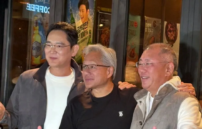 30일오후7시서울강남깐부치킨서회동"젠슨황언제와?"치킨집앞2시부터붐벼정의선현대자동차그룹회장도함께자리해'오징어게임'깐부상기시켜친밀한관계은유[아이뉴스24권서아기자]지난30일저녁서울강남구삼성동.퇴근길바람이선선해질무렵,평소조용한한'깐부치킨'가게앞골목이사람들로술렁였다."젠슨황언제와?"라는시민들의목소리가끊이질않았다.이날엔비디아·삼성전자·현대자동차관련한소셜미디어(SNS)에는'깐부치킨'에도착해기다리고있다는인증사진도끊임없이올라왔다.이재용삼성전자회장과정의선현대자동차그룹회장,젠슨황엔비디아최고경영자(CEO)의'치맥(치킨+맥주)회동'이예정된게알려졌기때문이다.이재용삼성전자회장(왼쪽부터),젠슨황엔비디아최고경영자,정의선현대자동차그룹회장[사진=권서아기자]이날세사람은오후7시경에모일것으로알려졌지만,깐부치킨앞에는오후2시부터사람들이모여들기시작했다.세사람의만찬이예정된창문맨앞자리에더가까이가기위해일찍부터도착한것이다.창문맨앞자리부근에서대기한한시민은가족에게전화를걸어"기자들이많다.그래도젠슨황,이재용,정의선이잘보이는자리를선점했다"며기쁜기색을내비쳤다.또세사람의등장을오래기다린탓에지친시민들은"혹시뒷문으로들어오는거아니야?"라는걱정도했다.마침내검은차량여러대가도착한뒤세사람이등장하자주위에서는"너무천천히걷는것같다"는말도나왔다.가게에도착한세사람은미리마련된창가가장자리에앉았다.황CEO는두회장에게일본술등에서명해선물을전달했다.매장안에서는치킨과맥주를나누며대화를나눴다.이들은크리스피순살치킨,마늘간장순살치킨등2만원대메뉴를선택했다.황CEO는가게에있는사람들을향해"오늘모두공짜"라고말했고이재용회장은"오늘내가다살게요"라고화답하며분위기를띄웠다.그러자현장은일순간축제의분위기로변했다.이날치킨집'깐부치킨'결제는이회장이했다.식당에따르면세사람회동자리뿐만아니라옆테이블결제까지전부한것으로알려졌다.이회장의1차계산이후나머지는현대자동차그룹이낸것으로알려졌다.정회장은"제가이래보여도여기서막내입니다"라고말하기도했다.황CEO는치맥회동중간중간나오며취재진과시민에게감자튀김등을나눠줬다.황CEO의이모습을찍기위한촬영신경전이벌어지기도했다.젠슨황엔비디아최고경영자가지난30일서울강남구'깐부치킨'에서이재용삼성전자회장,정의선현대자동차그룹회장과의치킨회동중간중간나와취재진과시민에게감자튀김등을나눠줬다.[사진=권서아기자]황CEO는한국을15년만에방문했다.아시아태평양경제협력체(APEC)CEO서밋참석차한국을방문해한국대기업회장들과캐주얼한만남을가진것이다.깐부는친한친구를뜻하는속어인데넷플릭스드라마'오징어게임'에서중요한역할을맡은조연이름이기도해서널리알려졌다.캐주얼한만남의회동장소를'깐부치킨'으로선택한것은세사람의관계를상징적으로은유하는셈이다.이재용삼성전자회장이지난30일젠슨황엔비디아CEO,정의선현대자동차그룹회장과서울삼성동치킨집'깐부치킨'에서치맥회동을한뒤취재진과만나고있다.[사진=권서아기자]황CEO는치키회동을마치고나오면서"삼성의기술력에강한믿음이있다"며한국기업에대한신뢰를보였다.이재용회장은"살다보니행복이(란게)뭐이렇게맛있는것을(친한사람과같이)먹고,그러는것같다"고회동의분위기를전했다.이번만남은치킨과맥주의결합이라는한국문화가글로벌기술담론과만나새로운'비즈니스회식모델'로자리할수있다는평가도나왔다.세사람의만남은1시간10분가량이어졌다.정의선현대자동차그룹회장(왼쪽부터),젠슨황엔비디아CEO,이재용삼성전자회장은지난30일나란히서울코엑스에서열린엔비디아의25주년게임페스티벌행사인'지포스'에참석했다.팬들에게선물을나눠주는모습.[사진=권서아기자]정의선현대자동차그룹회장(왼쪽부터),젠슨황엔비디아최고경영자,이재용삼성전자회장이지난30일서울강남구'깐부치킨'에서치맥회동을끝낸뒤나란히엔비디아의25주년게임페스티벌'지포스'에참석했다.[사진=권서아기자]인파는회동이끝난밤9시에도줄지않았다.세사람은치맥회동이끝난뒤인근코엑스에서열린엔비디아의25주년게임페스티벌인'지포스'로이동했다.그럼에도많은시민은'깐부치킨'매장주위를맴돌며기념사진을촬영하는등아쉬움을내비쳤다.먼발치서사진을촬영하는이들도많았다.깐부치킨내부를들어가려다제지당한시민들도많았다.깐부치킨이인공지능(AI)·자동차·반도체의3대거장의성지가됐다는이야기마저나왔다.치킨집에들어가려다제지당한한시민은"(왜아직깐부치킨근처에남아있냐는질문에)세사람이어떤이야기를했는지궁금해서들어가려고했다"고말했다./권서아기자([email protected])Copyright©아이뉴스24.무단전재및재배포금지.