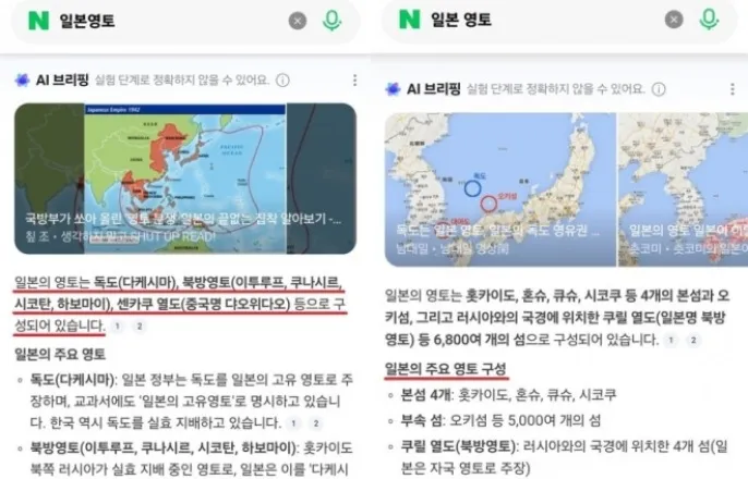 네이버AI브리핑,독도를‘日영토’에포함해논란AI마다‘왜곡된답변’…“日의도에힘실어”지적국내최대포털사이트네이버의인공지능(AI)검색서비스가일본주요영토에독도를포함시켜논란이일고있다.서경덕교수제공국내최대포털사이트네이버의인공지능(AI)검색서비스가독도를일본영토로잘못분류해논란이다.일본정부의지속적인독도영유권왜곡시도속에서‘온라인영토주권침해’문제에대한관리가필요하다는지적이나온다.30일네이버등에따르면네이버검색창에‘일본영토’또는‘일본영토’를입력하자“일본의영토는독도(다케시마),북방영토,센카쿠열도등으로구성돼있다”는AI요약본이나왔다.일부답변에서는독도를일본영토항목에포함하고,“한국과영유권분쟁중”이라는표현도사용했다.이에대해서경덕성신여대교수는“챗GPT등해외AI에서독도를분쟁지역으로표기하는문제는지속해항의해왔지만,국내대표포털에서이같은오류가나온건매우심각한일”이라며“네이버는즉시시정하고철저히검증해야한다”고지적했다.또“국가적으로민감하고중요한주제인만큼국내플랫폼이먼저역사적사실을정확히반영해야한다”며“특히해외이용자가많은만큼,한국서비스에서잘못된정보가전파되는일이없어야한다”고강조했다.현재네이버검색창에‘일본영토’또는‘일본영토’를입력하면AI브리핑이나오지않는것으로확인됐다.네이버측은“인지한즉시일본영토에대한AI브리핑을삭제했다”며“질의내용에더욱적합한검색결과를바탕으로AI브리핑이생성될수있도록면밀히살피며서비스개선해나갈것”이라고밝혔다.AI에독도영유권묻자…언어마다‘다른답변’AI와직접대화해본결과,독도와관련된왜곡된답변은해외와국내개발AI를가리지않고발견됐다.특히일본어로질문했을경우에는“국제적인분쟁지역”이라는답변이대부분이었다.오픈AI의챗GPT는‘독도는어느나라영토야?’라는한국어질문에“독도는대한민국의영토”라며“일본정부는독도를‘다케시마’라부르며영유권을주장하지만,대한민국은사적·지리적·국제법적으로독도가명백히한국영토임을근거로들고있다”고답했다.그러나일본어로‘다케시마는어느나라영토야?’라고묻자다른답변이나왔다.이때챗GPT는“일본과한국사이에영유권이분쟁되고있는섬”이라며“국제적으로영유권이확정되지않은분쟁지역”이라고했다.챗GPT에한국어로‘독도는어느나라영토야?’(위)라고물었을때와일본어로‘다케시마는어느나라영토야?’(아래)고물었을때답변.일본어로묻자“일본과한국사이에영유권이분쟁되고있는섬”이라며“국제적으로영유권이확정되지않은분쟁지역”이라고답했다.구글의제미나이도비슷했다.한국어질문에는“독도는역사적,지리적,그리고국제법적으로명백한대한민국영토”라면서도“다만일본은독도를‘다케시마’라고칭하며자신들의영토라고주장하고있다.이로인해독도영유권에대해한일간의외교적갈등이지속되고있다”고했다.일본어로물어보자“다케시마는일본이영유권을주장하며시마네현에속한다고규정하고있는섬”이라며“그러나현재대한민국이실효적으로지배하고있으며,한국에서는독도라고불리며자국영토라고주장하고있다”고답했다.또“다케시마의영유권에대해서는한일양국간에주장이대립하고있는상황”이라고도했다.네이버의클로바X도한국어와일본어물음에다른답변양상을보였다.클로바X는한국어질문에“독도는대한민국의영토”라며“대한민국정부는독도가역사적,지리적,국제법적으로명백히한국의고유영토임을공식적으로밝히고있으며,현재실효적으로지배하고있다”고답했다.다만일본어로묻자“대한민국이실효적으로지배하고있으나일본이역사적·국제법적근거를들어영유권을주장하며분쟁이지속되고있다”며“이문제는양국간의민감한외교현안으로,국제사회에서는아직명확히해결되지않은상태”라고했다.우리정부는“독도는역사적,지리적,국제법적으로명백한우리의고유의영토이며,영유권분쟁은존재하지않고,외교교섭이나사법적해결의대상이될수없다”는입장이다.이러한AI답변은독도를영유권분쟁지역으로보이게하려는일본측의의도에힘을실어준다는지적이나온다.서교수는“인공지능시대에는국제여론전의무대가검색창과알고리즘으로확대됐다”며“정부·학계·시민사회가함께다국어정보확산에나서야한다.독도정보의글로벌업데이트전략을재점검할시점”이라고전했다.윤예림기자Copyright©서울신문.무단전재,재배포,AI학습및활용금지.