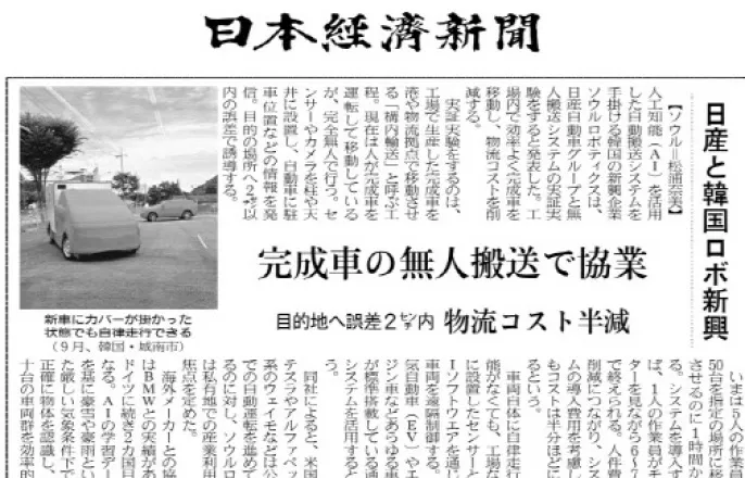 서울로보틱스,日닛산그룹공장자율주행프로젝트수주日언론“한국스타트업,자율주행AI기술력뛰어나”평가[이데일리윤정훈기자]한국스타트업서울로보틱스가일본완성차제조의상징인닛산(Nissan)그룹의물류자동화프로젝트를따내며일본산업계를놀라게했다.29일서울로보틱스는자사의인공지능(AI)기반물류자율주행솔루션‘LV5CTRLTWR(레벨5컨트롤타워)’가닛산그룹공장내차량이송(탁송)자동화프로젝트에채택됐다고밝혔다.이기술은사람의개입없이도공장에서생산된차량을항만이나물류거점으로스스로이동시키는완전무인자율주행시스템이다.닛케이신문에보도된서울로보틱스자율주행기술(사진=서울로보틱스)일본언론“한국AI,닛산이선택했다”이번소식은일본에서도큰반향을불러왔다.니혼게이자이신문(닛케이),도쿄신문,교도통신,NNAPOWERASIA등주요매체는“닛산이한국스타트업의자율주행AI를채택했다”고보도했다.닛케이는“서울로보틱스의기술이물류비를50%줄이고,차량을2cm이내오차로정확히목적지에정렬시킨다”며생산성향상효과를집중조명했다.숙련운전사5명이1시간걸리던50대차량이송을,이제는1명이모니터링하며6~7분만에끝낼수있다는것이다.도쿄신문은서울로보틱스가테슬라보다5년먼저레벨5컨트롤타워를상용화해운영중이라고보도했다.테슬라가최근유사한B2B솔루션을공개했지만,서울로보틱스는이미여러글로벌현장에서실증을마쳤다는점이차별화포인트다.특히이시스템은차량에자율주행기능이없더라도센서와AI만으로원격제어가가능해,별도개조없이자율주행차처럼운행할수있다는점이혁신으로꼽힌다.NNA는서울로보틱스가독일에이어일본에자율주행기술을수출한최초의한국기업이라며,물류자동화가고령화로인한인력부족문제를해결할현실적대안이라고강조했다.2030년까지글로벌물류자율주행시장112억달러규모성장전망EY컨설팅은2030년까지글로벌물류자율주행시장이16조4000억원(약112억달러)규모로성장할것으로내다봤으며,이중완성차탁송자동화만도4조3000억원(30억달러)에이를것으로전망했다.서울로보틱스의AI는8년간산업현장에서수집된‘예외상황(EdgeCase)’데이터를기반으로학습됐다.덕분에폭설,폭우같은악조건에서도객체를정확히인식하며수십대의차량을동시에통합제어할수있다.이한빈서울로보틱스대표는“일본주요언론이우리의기술력을집중조명한것은한국AI기술의글로벌경쟁력을입증한의미있는성과”라며“대한민국기술로외화를벌기시작했다는사실에자부심을느낀다”고말했다.이어그는“연내코스닥상장을추진해확보한자금을자율주행R&D와인재확보,로봇시스템확장에재투자하겠다”고밝혔다.윤정훈([email protected])Copyright©이데일리.무단전재및재배포금지.