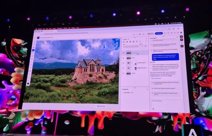 포토샵AI어시스턴트시연모습.<사진=고민서기자>어도비가포토샵에‘인공지능(AI)어시스턴트’를심었다.텍스트를입력해이미지를자동편집하는일방향적인구조에서벗어나AI가콘텐츠창작을위한맞춤형조언부터제안,지원까지이어주는‘나만의비서’가된것이다.어도비는28일(현지시간)미국캘리포니아주로스앤젤레스(LA)에서열린세계최대크리에이티브컨퍼런스‘어도비맥스2025’를개최했다.이날어도비는익스프레스와포토샵등어도비의대표적인콘텐츠창작툴에‘AI어시스턴트’를도입한다고밝혔다.사용자가어떤결과를원하고,어떤느낌을내고싶은지말로설명하기만하면콘텐츠로구현되는대화형인터페이스가적용된것이다.어도비관계자는“AI어시스턴트는기본적으로대화형인터페이스를통해반복적인편집작업을자동화하고,개인화된추천과방법안내를제공한다”고설명했다.예를들어창작자는AI에게“이인물의배경을흐리게해줘”또는“조명을부드럽게조정해줘”처럼지시할수있고,필요한상황에서는사용자가직접수동도구로미세조정도할수있다.또전단지를제작할경우익스프레스에서구동되는AI어시스턴트에게프롬프트입력을통해수정하고자하는텍스트를입력하면전단지에그대로반영되는식이다.이외에도콘텐츠내특정객체를수정하거나원하는포맷으로바꿀때에도AI어시스턴트가도와준다.실제익스프레스와포토샵의AI어시스턴트는이날어도비맥스현장시연에서큰호응을얻기도했다.디파수브라마니암크리에이티브전문가마케팅부문부사장이연설하고있다.[로스엔젤레스고민서기자]디파수브라마니암크리에이티브전문가마케팅부문부사장은“어도비는전세계창작자들이폭발적으로늘어나는콘텐츠수요속에서도창의성의자유와그시간을지켜낼수있도록지원하고있다”면서“AI는이제창작자의자유와정밀한통제력을한층강화하는방향으로진화하고있다”고말했다.즉,창작자는AI어시스턴트에게개인화된조언과제안을받으면콘텐츠결과물의완성도를끌어올리면서도제작과정을보다편하게간소화할수있게됐다는분석이다.데이비드와드와니어도비디지털미디어부문사장은“모든창작자가생성형AI와대화형AI,그리고폭발적으로증가하는콘텐츠수요가가져올경제적·예술적기회를누릴수있어야한다”면서“어도비AI는세상을상상력으로그려나가는창작자들을위해설계됐다”고강조했다.AI가인간의창의성을대체하는것이아니라확장하는도구라는얘기다.[로스앤젤레스고민서기자]Copyright©매일경제&mk.co.kr.무단전재,재배포및AI학습이용금지