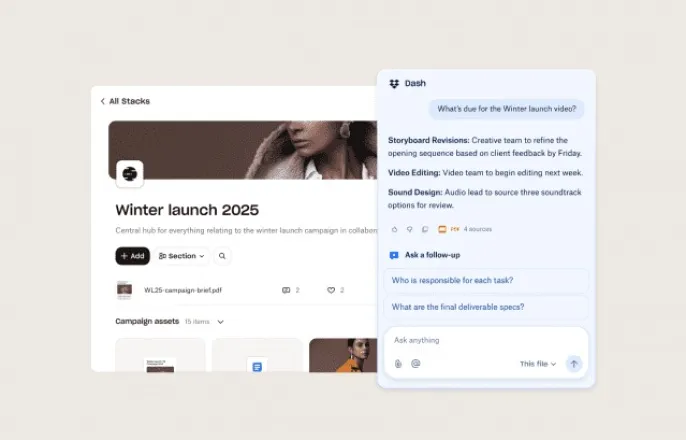 PDF부터이미지까지자연어검색가능…MCP호환앱·내부서비스로AI확장(지디넷코리아=한정호기자)드롭박스가인공지능(AI)어시스턴트및범용검색툴인'드롭박스대시'의확장성을강화해사용자접근성을높인다.드롭박스는대시의컨텍스트인식AI기능을드롭박스자체솔루션에확장적용한다고28일밝혔다.드롭박스대시는슬랙·마이크로소프트·노션·캔바등다양한업무툴과연동돼사용자가여러플랫폼에저장된방대한콘텐츠와정보를한곳에서검색할수있도록지원한다.(사진=드롭박스)업무시컨텍스트인식AI는사용자와팀의업무맥락을이해해필요한정보와인사이트를보다정확하게제공한다.이번데스크톱앱정식출시로드롭박스대시는별도의IT지원없이도누구나손쉽게툴을연동하고설정할수있게됐다.드롭박스대시는멀티모달검색을통해자연어기반콘텐츠검색기능도제공한다.사용자는간단한설명만으로PDF부터PNG까지다양한형식의콘텐츠를정확하고빠르게찾을수있다.대시의검색기능은드롭박스의모델컨텍스트프로토콜(MCP)서버를통해클로드·커서·구스와같은MCP호환앱내에서도사용가능하다.또사용자의자연어질문에도콘텐츠데이터를기반으로답변을제공한다.AI기반작문툴을활용하면답변내용을이메일초안이나보고서등실제콘텐츠로발전시킬수있다.이모든과정은인터넷탭을전환하거나파일을새로생성하지않고도이뤄진다.특히드롭박스대시는팀이함께사용하는실시간업무공간역할을한다.스택기능을통해팀전체의업무맥락을이해해관련콘텐츠,링크,변경사항등을실시간으로정리하고업데이트한다.사용자가질문을하면관련스택의자료를기반으로구체적인답변을제공한다.이모든기능은드롭박스의개인정보보호및보안원칙을바탕으로설계됐다.드롭박스는사용자의데이터를판매하지않으며생성형AI모델개발에사용하지않는다고강조했다.또접근제어기능을통해사용자의콘텐츠를안전하게보호한다는방침이다.드롭박스는향후드롭박스대시의AI기능을드롭박스자체서비스에도확대적용할계획이다.이를통해기존드롭박스사용자들도드롭박스대시의AI기능을경험할수있다.아울러드롭박스는AI스타트업모비우스랩스와협력해이미지·동영상·오디오등다양한미디어파일을포함한복합검색및응답기능을고도화할예정이다.드롭박스대시앱은현재미국에서만제공되며향후다른국가로서비스범위를확대할계획이다.드롭박스신재용매니저는"MIT의최신NANDA이니셔티브보고서에따르면전체AI툴의95%가파일럿단계에머물며실제도입으로이어지지못하고있다"며"우리는이러한문제를해결하기위해다양한업무툴과의연동성을지속적으로강화하고드롭박스대시의강력한AI기능에대한접근성을확장하고있다"고말했다.이어"드롭박스대시는이제팀의한구성원처럼사용자들의업무효율화를지원할것"이라고덧붙였다.한정호기자([email protected])Copyright©지디넷코리아.무단전재및재배포금지.
