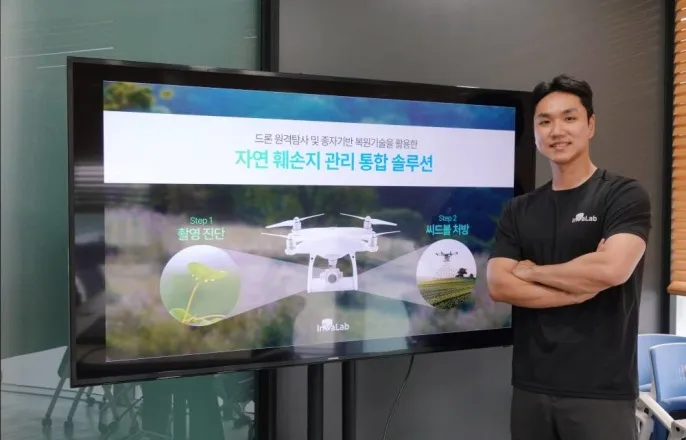 [서울시립대학교는2022년부터‘서울임팩트(SeoulImpact)’사업을시작으로,'가장서울다운영향력,가장세계적인가치'를비전으로내세워청년창업과지역혁신을선도합니다.특히AI기반도시혁신과소셜임팩트분야의스타트업을집중지원하며,기술과사회적가치가조화를이루는지속가능한창업생태계를조성하고있습니다.서울시캠퍼스타운사업에서지역활성화분야우수사례로선정됐으며,2024년서울시캠퍼스타운성과평가에서A+등급을획득했습니다.이에IT동아는서울시립대학교가육성중인AI스타트업들의성장스토리와혁신성과를소개합니다.][IT동아박귀임기자]"과학적근거기반으로자연과인간이공존하는지속가능한미래를만들겠습니다."신원협인베랩대표/출처=IT동아이상기후에따른생태계피해가심각하다.단풍잎돼지풀,가시박,서양등골나물등과같은생태계교란식물도국내곳곳을뒤덮으며자생종을위협한다.이들은빠르고강한번식력으로토착생태계를교란할뿐만아니라농작물피해와알레르기유발등으로인간의건강에도악영향을미친다.그피해지역범위역시매년확대되는추세다.하지만생태계교란식물을효과적으로관리하고훼손된생태계를복원하는것은쉽지않다.광범위한현장조사와전문인력이필요한데다가제거후에도지속적인모니터링이필수적이기때문이다.네이처테크스타트업주식회사인베랩(InvaLab)이AI,드론,IoT기술등으로해당문제를해결하기위해나선다.신원협인베랩대표를만나사업의방향성과목표를들어봤다.생물다양성분야전문성으로뜻밖의창업결심2023년설립된인베랩은생태계교란식물방제통합솔루션을개발하는업체다.'침략'또는'침투'를뜻하는'인베이전(Invasion)'에서영감을받아사명을지은신원협대표는"'생태계교란식물의침략을막고,원격탐사기술로보이지않는영역까지침투해생물다양성을정량화하겠다'는이중의의미를담고있다"고설명했다.생물다양성은지구상의생물종,생태계,유전자다양성을총체적으로지칭한다.생태계기능유지기반이되는만큼중요하다.식물생태학을전공한신원협대표는해당분야의문제를기술로해결하고자인베랩을창업했다/출처=IT동아인베랩의설립일인9월7일은국제기구유엔(UnitedNations,UN)이지정한'푸른하늘의날'이다.푸른하늘의날은환경오염의경각심을일깨우는동시에오염저감과청정대기를만들자는취지로2020년부터기념한다.우리정부가제안한최초의유엔공식기념일이자국가기념일이라는점도의미있다.신원협대표는처음부터창업에뜻이있었던것은아니었다.그는2018년서울대학교에서식물생태학전공으로석사졸업을앞두고,유엔산하유엔개발계획(UNDP)의태국방콕지역사무소인턴기회를얻어약6개월동안근무했다.이때사회와기후이슈는가속화되는데기술이있어도조직적거버넌스문제로해결속도가느린것에답답함을느꼈다.조직특성상잦은인사이동으로추구하는연구를지속할수없을수도있겠다는현실적인고민도했다.이후서울대학교에서2024년조경학박사학위를취득하는등자연환경생태계분야의전문성을키웠다.또식물생태학관련분야를꾸준히연구한신원협대표는"식물생태학은전문가중심으로운영되는인력집약적분야지만,고된현장업무와낮은처우로인력이계속줄어드는상황"이라면서"현장자료취득부터분석까지노동이배가되는구조를기술적으로극복할필요가있었다.이문제를기술적으로해결하고빠른솔루션적용을위해자연스럽게인베랩을창업하게됐다"고회상했다.정밀진단부터맞춤형실행까지통합솔루션제시인베랩은자연환경생태복원에과학적근거기반의핵심기술을더하는통합솔루션을제공한다.이핵심기술은정밀진단(모니터링)과맞춤형실행(복원)이라는두축으로구성된다.우선정밀진단은다분광드론과일반고해상도드론영상을융합분석하는원격탐사기법을활용한다.현재생물탐지정확도를95%까지확보한상태다.눈으로볼수없는영역까지생물을정량화하는것.이진단결과를바탕으로인베랩은자체개발한시드볼(SeedBall)을생산및파종하며맞춤형실행이이뤄진다.복원에필요한시드볼의기능과수량을적절하게판별하는것도핵심기술인셈이다.신원협대표는"의료분야의영상진단기술인씨티(ComputedTomography)나엑스레이(X-ray)장비는많지만,이를촬영한이미지를정확하게진단하고적절한처방을내리는것이더중요하다.인베랩도마찬가지다.드론촬영이미지와생태데이터를분석해의사결정을내리고필요한시드볼의기능과수량을판별하는등독자적기술력을갖췄다"고강조했다.네이처블리츠와네이처X는인베랩에서선보이는대표솔루션이다/출처=인베랩인베랩에서선보이는솔루션은▲네이처블리츠(NATUREBlitz)▲네이처X(NATUREX)등이대표적이다.네이처블리츠는훼손지복구및복원을위한맞춤형시드볼제품이다.자생종의기능적경쟁원리를반영해종자를선별,적합한토양과영양물질을배합해맞춤형으로제작된다.관련특허2건과SCI급논문9건을보유한국내최고수준의대안식물기술력이강점이다.기존관리방법의파편화문제를해결하고,드론운용으로인력사고를줄이는것은물론접근제한지역에서도작업수행이가능하다.모니터용과파종용드론을분리해운용하는것도인베랩의특징이다.모니터용에는라이다(LiDAR)센서나다분광센서를장착한