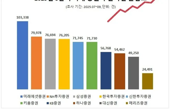 데이터앤리서치10개증권사빅데이터분석...미래에셋증권10만3338건1위미래에셋증권(대표김미섭·허선호)이국내증권사중올3분기온라인관심도가가장높은곳으로조사됐다.NH투자증권과삼성증권이뒤를이었다.29일여론조사기관인데이터앤리서치는뉴스·커뮤니티·블로그등다수채널과사이트들을대상으로10개증권사에대해지난7~9월온라인정보량(포스팅수=관심도)을빅데이터분석했다고밝혔다.조사대상증권사는임의선정했으며정보량순으로△미래에셋증권(대표김미섭·허선호)△NH투자증권(대표윤병운)△삼성증권(대표박종문)△한국투자증권(대표김성환)△신한투자증권(대표이선훈)△키움증권(대표엄주성)△KB증권(대표김성현)△하나증권(대표강성묵)△대신증권(대표오익근)△메리츠증권(대표김종민)이다.분석키워드는'증권사명'이며,증권사고유업무와관련이적은사람이름이나후원,경기,스포츠등의키워드는공통제외어로설정했다.분석결과,미래에셋증권이총10만3338건의포스팅수를기록해올3분기증권사관심도1위에올랐다.9월 맘***라는네이버블로거는미래에셋증권의자녀명의연금저축계좌에대한후기를공유했다.작성자는"자녀명의로연금저축계좌를개설할때,사람들이미래에셋증권을가장많이사용한다고해서가입했다"며가입이유를밝히고,"여러서류를제출해야하는데,미래에셋증권은서류발급조건에대해아주상세하게적혀있어가입하는게무척수월했다"는평가를남겼다.같은달한커뮤니티의투자게시판에는미래에셋증권의자사주소각관련정보가올라왔다.정보에따르면미래에셋증권이약2200억원이라는역대급규모의자사주소각을실현했고,잔여자사주도단계적으로소각할예정이기때문에시장신뢰유입의결정적계기로작용할것으로기대된다는점을언급했다.7월찐**라는네이버블로거는미래에셋증권의개인형퇴직연금(IRP)계좌에대한글을게시했다.그는"미래에셋증권은국내대형증권사기때문에신뢰도가높고,상품라인업이매우다양하다"며,"기본관리수수료가가입한첫해에는무료고,그이후에도연0.2%수준의합리적인수수료구조를유지하고있어장기투자에유리하다고생각한다"고전했다.NH투자증권이7만9978건의정보량으로,같은기간증권사관심도2위를차지했다.9월X(구트위터)의한유저는"주식처음시작하는사람들은NH투자증권앱에있는'나무팜'으로주식배우는걸추천한다"는트윗을작성했다.작성자는"1000원부터주식매수가가능하고,보유주식이오르면내농장의농작물들이자라서농장을키워나가는재미가쏠쏠하다"고덧붙였다.8월 쥬*****라는네이버카페이용자는NH투자증권의'나무멤버스'에대해소개했다.작성자는"나무멤버스는미국주식거래수수료를0.07%로할인해주고,공모주청약수수료까지아예면제해준다"면서,"서비스이용료가월2900원인데,공모주수수료가한건당2000원인걸감안하면청약2건만넣어도무조건이득인구조다"고설명했다.삼성증권은7만6694건의정보량으로,같은기간증권사관심도3위를기록했다.8월증권관련커뮤니티의한회원은삼성증권의개인종합자산관리계좌(ISA)에대해"ISA계좌의핵심은절세인데,삼성증권앱에있는ISA절세계산기와절세시뮬레이터를사용하면ISA를상당히효과적으로운용가능하다"면서,"나같은주식초보도똑똑하게투자할수있다"고강조했다.이어△한국투자증권7만6205건△신한투자증권7만1745건△키움증권7만1730건△KB증권5만6768건△하나증권5만4462건△대신증권4만9250건△메리츠증권2만4491건순으로나타났다.데이터앤리서치관계자는"이번3분기증권사전체포스팅수는총66만4661건으로전년동기대비10만5389건,18.9%나크게늘었다"며,"최근증시가활황세를보이고있는데다온라인투자환경이개선되고이용자접근성이높아진점이영향을미친것으로보인다"고전했다[email protected]©게임톡.무단전재및재배포금지.