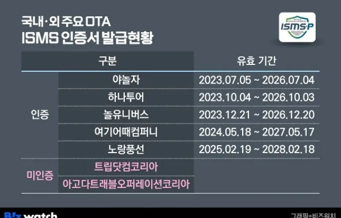 매출분류에따라ISMS인증의무예외잇따른해킹사고로개인정보유출에대한우려가커지고있는가운데트립닷컴과아고다등일부해외온라인여행사(OTA)들은개인정보보호관리체계(ISMS-P)등의인증을받지않은것으로나타났다.외국계플랫폼기업들의개인정보보호관리체계인증이강화되어야한다는지적이나온다.매출100억원넘는데…의무대상제외28일한국인터넷진흥원(KISA)에따르면트립닷컴,아고다등해외OTA는ISMS-P등의인증서를발급받지않았다.ISMS-P인증은정보보호·개인정보관리체계전반을심사해주요정보자산의안전성·신뢰성을공식적으로증명하는국가제도다.지난2018년를비롯한정보보호관리체계(ISMS)와개인정보보호관리체계(PIMS)를통합해만들었다.정보통신망법상정보통신서비스부문매출액100억원이상또는일간활성이용자수(DAU)가100만명이상인기업은ISMS인증을의무적으로받아야만한다.일반적으로정보통신망을통한서비스나상품예약,전자지급결제대행업은정보통신서비스로분류된다.글로벌OTA기업인트립닷컴의국내법인트립닷컴코리아(구씨트립코리아)는지난해매출155억원을기록했다.아고다의국내법인으로전자지급결제대행업자(PG사)인아고다페이먼트코리아는지난해매출액은공개하지않았으나,2023년기준매출액이486억원에달했다.그러나KISA에따르면씨트립코리아와아고다페이먼트코리아는모두ISMS인증의무대상이되지않은것으로분류됐다.정보통신서비스로분류되는사업을하고있는데다국내지사의매출이100억원을넘겼지만,정보통신서비스부문매출이100억원을넘기지않았다고본것이다.해외에본사를둔글로벌기업이국내지사에서발생한매출을정보통신서비스가아니라다른분야에서발생한매출로분류하면ISMS인증의무대상을피해갈수있다.KISA는트립닷컴과아고다가이러한경우로보인다고설명했다.KISA는해외기업을상대로ISMS인증을안내하고있다.그러나ISMS인증을강제할수있는법적수단이없고,매출을어떻게분류하는지에따라얼마든지ISMS인증의무대상에서벗어날수있어문제로지적된다.KISA관계자는"많은해외기업이국내에지사가있는데도ISMS인증의무대상이되지않는경우,국내지사에서의매출은영업·홍보등으로분류한다.아고다페이먼트코리아와씨트립코리아역시그런경우로보인다"면서"이경우ISMS인증을강제할수단도없고,강제한다면부작용도우려될수있다"고말했다.정보유출우려커지는데…국내OTA역차별국내OTA에대한'역차별'이라는목소리도나온다.하나투어,노랑풍선,놀유니버스,야놀자,여기어때등국내주요여행사들은모두ISMS인증을받았다.해외OTA들의개인정보유출에대한우려는점차커지고있다.대표적인해외OTA인트립닷컴의경우최근중국에위치한자회사에개인정보를공유할수있다는지적이나온상황이다.현행중국사이버보안법과국가정보법에따르면중국정부가필요하다고판단하면기업은보유한데이터를제공해야한다.김재섭국민의힘의원은지난14일국회정무위원회국정감사에서"트립닷컴자회사대부분이중국회사인데,이용약관을보면이용자의개인정보를당사계열사와공유할수있다고고돼있다"고지적했다.이어증인으로참석한홍종민트립닷컴한국지사장에게"해당약관을고치겠다고약속하라"고촉구했다.정보보안업계한관계자는"ISMS미인증으로과태료를부과한다고해도해외기업들에충분히억제효과를발휘하는데한계가있다"며"아직까지일부외국계기업은한국법인이본사를설득하는데많은어려움이있는것이현실"이라고말했다.편지수([email protected])ⓒ비즈니스워치의소중한저작물입니다.무단전재와재배포를금합니다.Copyright©비즈워치.무단전재및재배포금지.