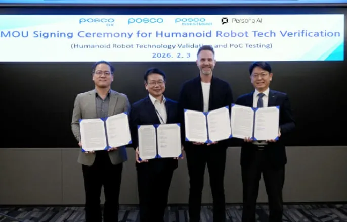 수십톤철강코일하역작업에로봇-인간협업모델도입,안전성및효율성제고기대(지디넷코리아=남혁우기자)포스코그룹이제철소철강제품물류관리에인간형로봇인'휴머노이드로봇'도입을추진하며제조현장의'피지컬AI(PhysicalAI)'전환에속도를내고있다.제조업특성을반영한로봇도입으로작업안전성을높이고스마트팩토리고도화를이끌겠다는구상이다.포스코그룹은경기도판교포스코DX사옥에서포스코,포스코DX,포스코기술투자,그리고미국의휴머노이드로봇전문기업페르소나AI등4개사관계자가참석한가운데'산업용휴머노이드로봇의현장적용을위한업무협약(MOU)'을체결했다고4일밝혔다.(좌측부터)포스코DX정규호전략실장,심민석포스코DX사장,니콜라스래드포드페르소나AICEO,김근환포스코기술투자사장(이미지=포스코DX)이번협약은단순한기술제휴를넘어실제제철소현장에휴머노이드로봇을투입하고,작업자와로봇이협업하는모델을구축하기위해마련됐다.각사는전문성을바탕으로역할을분담한다.포스코는제철소내로봇도입이가능한작업공간을발굴하고현장적용성평가를주도하며,포스코DX는로봇자동화시스템의설계및구축과제철소특화모델의공동개발을맡는다.포스코기술투자는사업검증(PoC)과정을지원하고,페르소나AI는제철소환경에최적화된휴머노이드로봇플랫폼을개발·구현할예정이다.첫번째시범적용대상은제철소물류의핵심인철강재코일관리현장이다.포스코그룹과페르소나AI는오는2월부터생산된철강코일의물류관리에휴머노이드로봇을투입하는사업검증(PoC)에착수한다.특히주목할부분은'크레인벨트체결'작업이다.무게가20~40톤에달하는거대한압연완성품코일을하역하기위해서는크레인작업이필수적인데,이과정에서코일에벨트를묶는고난도작업을휴머노이드로봇이작업자와함께수행하게된다.해당공정은사고위험이높고반복적인동작으로인해근골격계질환의우려가있었던곳으로,로봇도입을통해안전사고예방과근무환경개선효과가클것으로기대된다.포스코그룹은지난해부터이송,자재준비등제철소내터미널물류공정에휴머노이드로봇도입을검토해왔다.그룹측은이번실증을통해로봇의기계적안전성과인간과의협업가능성이입증되면,향후투입규모를늘리고다양한물류현장으로적용범위를확대할계획이다.이번에협력을맺은페르소나AI는2024년설립된미국의유망로봇스타트업으로,저명한로봇공학자들과업계전문가들이이끌고있다.특히NASA의로봇핸드기술과자체정밀제어기술을결합해미세부품조립부터고중량물처리까지가능한산업용휴머노이드로봇을개발중이다.포스코그룹은이번협약에앞서페르소나AI의기술력을높이평가해지난해총300만달러를선제적으로투자하기도했다.포스코그룹관계자는"이번프로젝트는AI전환(AX)등급변하는산업패러다임에대응하고,제조현장에인텔리전트팩토리를확산하기위한노력의일환"이라며"기술을토대로안전하고쾌적한일터를구현해중후장대산업현장의혁신을이끌어나가겠다"고밝혔다.남혁우기자([email protected])Copyright©지디넷코리아.무단전재및재배포금지.