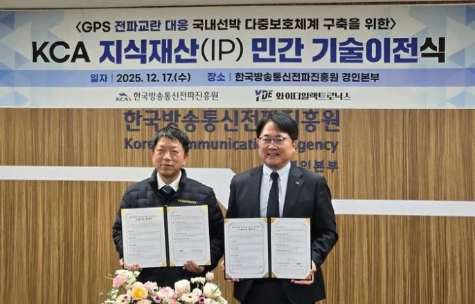 YDE와GPS전파교란대응국내선박다중보호체계구축추진[서울=뉴시스]한국방송통신전파진흥원은와이디일렉트로닉스주식회사(YDE)와'GPS전파교란대응국내선박다중보호체계구축'을위한지식재산민간기술이전협약식을인천연안여객터미널과방송통신전파진흥원경인본부에서개최했다고17일밝혔다.(사진=KCA제공)[서울=뉴시스]윤현성기자=한국방송통신전파진흥원(KCA)이자체개발한GPS전파교란대응기술을민간에이전하기로했다.한국방송통신전파진흥원은와이디일렉트로닉스주식회사(YDE)와GPS전파교란대응국내선박다중보호체계구축을위한지식재산민간기술이전협약식을인천연안여객터미널과방송통신전파진흥원경인본부에서개최했다고17일밝혔다.이번협약은주변국의GPS전파교란으로부터국내연안·근해를운항하는선박의항행안전을강화하기위해,방송통신전파진흥원이개발한선박용안테나보호기술을민간기업에이전하고현장적용을확대하기위한것이다.방송통신전파진흥원은그동안연구개발을통해선박용위성항법안테나에전파차폐구조를적용해교란신호를차단하는'안테나보호(쉴드)기술'을개발해왔다.YDE는정부연구과제를통해이로란(eLoran,첨단지상파항법시스템으로GPS취약점을보완하는보조항법장치)·위성항법시스템(GNSS)통합수신기를개발중이다.양기관은방송통신전파진흥원의안테나보호기술과YDE의이로란·위성항법통합수신기를결합해전파교란상황에서도항행정보를안정적으로유지하는'다중보호체계'를공동으로구축해나갈계획이다.협약식에앞서인천연안여객터미널인근시험선박에서는전파교란(재밍)환경에서통합장비를적용한이후에는선박의위·경도등항행정보가안정적으로유지되는등다중보호체계의효과를검증했다.이날체결된기술이전협약에따라양기관은▲방송통신전파진흥원이보유한안테나보호지식재산(IP)의이전및활용▲기술설명·시험·검증등공동연구협력▲기술사업화및성과공유·확산▲선박안전분야민간기술역량강화와기업성장지원등에상호협력하기로했다.김희수YDE대표이사는"당사는기존이로란·위성항법수신기단가를1/10수준으로제작해2027년하반기상용화를목표로하고있다.방송통신전파진흥원이개발한전파교란차폐기술을이전받아더강력한항재밍기능을갖추게돼국내선박의항행안전을한단계높일수있는계기가마련됐다"라며"향후다양한선박과항만·연안안전인프라에기술을확대적용해,해상안전과국가전파안전역량강화에기여하겠다"고전했다.방송통신전파진흥원은앞으로도선박·항만·항공·육상교통등국민생활과밀접한분야에서전파기술을활용한안전서비스와지식재산민간이전을지속적으로추진해전파를활용한대국민안심서비스고도및민간기술경쟁력제고를함께이뤄나간다는계획이다.이상훈방송통신전파진흥원장은"주변국의GPS전파교란은우리어선과상선,연안여객선등국민의생명과직결되는심각한위협"이라며"공공연구로축적한전파안전기술을민간기업의장비개발역량과결합해현장에빠르게보급함으로써,국민이안심하고바다를이용할수있는환경을만드는데앞장서겠다"고말했다.☞공감언론뉴시스[email protected]©뉴시스.무단전재및재배포금지.