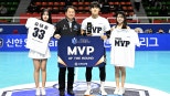 ▲2라운드MVP두산김태웅(오른쪽에서두번째) 두산김태웅이핸드볼H리그남자부2라운드최우수선수(MVP)가됐습니다. 한국핸드볼연맹은오늘(8일)신한SOL뱅크2025-2026핸드볼H리그2라운드팀및개인상시상내역을발표했습니다. MVP김태웅은2라운드5경기에서20골,도움10개,스틸3개등의활약을펼쳤습니다. MVP는매라운드공격과수비등의항목을포인트로채점해수상자를정합니다. 김태웅이264점으로MVP에뽑혔으며박세웅(SK)이239점으로2위에올랐습니다. 플렉스(flex)2라운드베스트팀은1라운드에이어인천도시공사가선정됐습니다. MVP상금은100만원,베스트팀상금은50만원입니다. (사진=한국핸드볼연맹제공,연합뉴스)