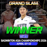 (MHN권수연기자)한국배드민턴단식선수사상최초그랜드슬램의기록을이룬'셔틀콕여제'안세영(삼성생명)이금의환향했다.안세영은지난13일인천국제공항을통해배드민턴대표팀동료들과함께귀국했다. 안세영은전날중국닝보에서열린2026아시아선수권여자단식결승전에서세계랭킹2위왕즈이(중국)에세트스코어2-1로승리하며우승을차지했다.이우승으로그는2024년올림픽금메달,2023년세계선수권대회와아시안게임금메달에이어올해아시아선수권을제패하며그랜드슬램의마지막조각을끼워넣었다.한국남녀선수를통틀어서는박주봉,김문수,김동문에이어통산네번째기록이다.그리고여자부와단식선수가운데는한국최초기록이다. 안세영은우승을달성한후자신의SNS를통해서"드디어바라던그랜드슬램이라는결과를만들어냈다"며기쁨을가감없이표현했다.귀국길에오른안세영은이목표를달성한것에대해재차뿌듯함을표하며"부담감도많이있었고,정말더하고싶었던욕심이계속생겼는데그걸억누르느라많이힘들었지만이렇게멋지게해낼수있어서정말후련하고기쁘다"고전했다.전달전영오픈에서맞이해패했던왕즈이에게도설욕할기회를얻었고이를되갚는데성공했다.그는"전영오픈을돌아보면서어떤점이부족했는지계속생각했다.실수한뒤(흐름을)빨리이어가는것을많이연습했다.덕분에포기하지않고끝까지할수있었다"고밝혔다.아울러점차강해지는상대들에대해서도"상대들이열심히준비하고있다는걸느끼고있다.나도뒤쳐지지않고더나아가야겠다는동력이된다.점점힘들어지지만점점더재밌어지는것같다"고도답했다. 안세영의시선은이제다음으로옮겨간다.올해열리는아이치나고야아시안게임에서2연패를차지하는것. 안세영은지난2023년열린항저우아시안게임에서금메달을차지한바있다.이대회를두고그는"정말간절하고우승하고싶은대회"라며"많은생각을하고있지만말보다는결과로보여드려야할것같다.앞으로도계속좋은경기,하고싶은경기를펼치겠다"고다짐했다. 사진=연합뉴스,대한배드민턴협회