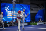 남자68㎏급정우혁(홍)의경기모습.사진[연합뉴스]한국이무주태권도원2025세계태권도그랑프리챌린지에서은메달2개를추가로수확했다.29일전북무주태권도원T1경기장에서열린대회둘째날남자68㎏급정우혁(한국체대)과여자67㎏초과급송다빈(울산시체육회)이결승에서아쉽게패하며은메달을차지했다.지난6월미국샬럿그랑프리챌린지68㎏급우승자정우혁은결승에서2022항저우아시안게임챔피언툽팀당반룽(태국)에게0-2(1-137-21)로완패했다.여자67㎏초과급송다빈(청)의경기장면.사진[연합뉴스]지난달유니버시아드73㎏초과급금메달리스트송다빈은개인중립자격선수(AIN)아나스타시야코스미체바에게0-2(5-65-6)로아깝게졌다.두선수는1-3위에게주어지는2026그랑프리시리즈출전권을확보했다.한편파리올림픽금메달리스트들이연이틀부진을보였다.여자67㎏초과급챔피언앨시아라우린(프랑스)은16강에서,전날남자80㎏급우승자피라스카투시(튀니지)는8강에서각각탈락했다.