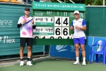 [스타뉴스|이원희기자]이정헌과권순우(오른쪽)./사진=대한테니스협회제공권순우(국군체육부대)-이정헌(국군체육부대·성남시청)조가'하나증권제4회대한테니스협회장배'일반부남자복식에서우승을차지했다.권순우-이정헌조는2일양구테니스파크에서열린대회남자복식결승전에서손지훈-정홍(이상김포시청)조를2-0(6-46-4)으로누르고우승트로피를들어올렸다.우승이후권순우는대한테니스협회를통해"파트너(이)정헌이가전날전역을했는데같이우승을해서선물로주고싶었다.복식이니나혼자잘할수는없다.파트너덕이다.투어대회다닐때는혼자이거나코치님,트레이너선생님정도인데국내대회특히상무팀선수들도많고다른팀선수들이모두관중석을채워주셔서분위기가좋았다"고말했다.권순우는"국내대회에서(우승하는것이)더힘든부분도있다.국내선수들이외국대회에나가기가쉽지않아서그렇지국제경쟁력은충분이있다고본다"고했다.권순우는최근ITF안동국제대회에서단복식2관왕을차지한데이어ITF창원대회단식우승,ITF대구대회에서는복식준우승을하며국내개최대회에서좋은성적을거두고있다.대한테니스협회장배출전은이번이처음이다.이번대회에선발목부상후재활중이어서단식은출전을안했다.이정헌은"집중력을끝까지유지하려고노력했다.왼손잡이의강점도있었지만무엇보다전역기념으로(권)순우형에게좋은선물을받았다.부모님께서경기장까지오셔서응원해주셔서너무감사하다.전날전역을했는데그것도실감이안나고실업에와서남자복식우승도처음이라너무기쁘다.순우형에게너무고맙다.소속팀(성남시청)에가서도더욱열심히하겠다.원래부모님이오시면승률이안좋았었는데그징크스가다행이다"고소감을밝혔다.정효주(왼쪽)와김나리./사진=대한테니스협회제공여자복식에선김나리(수원시청)-정효주(강원도청)조가우승을차지했다.김다빈(강원도청)-임희래(의정부시청)조를2-0으로꺾었다.김나리(수원시청)는"첫세트초반에안풀렸던게후반부에들어서면서괜찮아졌고작전도잘짜고호흡이잘맞았다.이상하게협회장배대회에서단복식모두성적을내지못했는데올해드디어도자기(우승컵)를탈수있어서기쁘다"고말했다.정효주는"올해가선수생활마지막해인데(김)나리언니가파트너를해주셔서너무감사하고우승까지해서더욱기쁘다.언니가부담감이상당히컸을텐데오히려저를편하게해주시려고노력하는부분이너무감동이어서눈물이왈칵났었다"고소감을밝혔다.김나리와정효주는3년만에파트너로우승을합작해냈다.김나리는1990년생으로국내현역여자선수중최고령선수다.이전까지김나리는김다빈과10회이상페어로복식우승을차지한바있었고올해협회장배대회는후배정효주의은퇴전마지막선물로참가해우승을일궈내며우승의기쁨을나눴다.혼합복식은이영석(안동시청)-오정하(강원도청)조가정영훈(괴산군청)-박령경(경신시청)조를이기고우승을거머쥐었다.