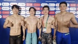 [OSEN=고성환기자]이주호(서귀포시청),최동열,김영범,황선우(이상강원특별자치도청)로이뤄진대한민국경영대표팀이사상처음으로세계수영선수권대회남자혼계영400m결선에올랐다.한국경영대표팀은3일싱가포르세계수영선수권대회아레나에서열린2025제22회싱가포르세계수영선수권대회남자혼계영400m예선에서3분32초54로터치패드를찍으며총25개출전국중8위를차지,결선행티켓을손에넣었다.2023년에열린항저우아시안게임에서남자혼계영400m은메달을합작했던구성원그대로나선경영대표팀은이주호가배영구간을53초60,최동열이평영구간을59초58,김영범이접영구간을51초12,황선우가마지막자유형구간을48초24로도착해3분32초54를기록했다.항저우에서이들이세운한국기록3분32초05에는0.49초모자랐다.하지만대표팀은결승에서한국기록을새로쓸기회를한번더얻게됐다.한국수영이혼계영400m종목결선에오른건남녀를통틀어이번이최초다.혼계영400m는팀마다4명의선수가배영-평영-접영-자유형순서로차례로100m씩레이스를펼쳐최종순위를가린다.이번대회에선한국이아시아국가중유일하게결선에진출하며아시아의자존심을지켜냈다.대표팀주장이자배영구간을맡은이주호는경기후"2년전2023후쿠오카대회때부터이멤버로국제대회에나섰는데,생각보다네명이동시에컨디션이좋기가힘들더라"라며"그래서이번에대한민국최초로결선진출까지해낸게의미하는바가크다"라고소감을밝혔다.또한그는"(혼계영은)모든영법을고르게잘해야하는데,오늘을통해대한민국수영도세계적인수준까지많이올라왔다고말할수있다고생각한다.중국과는항상압도적인기록차이가있었는데,중국을이긴건처음이라이점은아직도실감이안난다.같이잘해준동생들에게고맙다.오후결선때는한국기록을넘어서는것을목표로최선을다하겠다"라고전했다.남자혼계영400m결선은한국시간으로오후9시시33분에시작된다.한편,여자부경기에서는김승원(경기구성중),고하루(강원체고),김도연(대전체고),허연경(대전광역시시설관리공단)순으로역영을펼쳐4분4초36으로20개국중15위에자리했다./[email protected]韓수영새역사탄생...'이주호·최동열·김영범·황선우',中꺾고세계선수권남자혼계영400m결선진출한국남자혼계영400m서세계선수권첫결승진출…예선서8위韓수영새역사썼다…남자혼계영400m,세계선수권첫결승진출