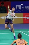 [스타뉴스|수원=안호근기자]안세영이24일BWF월드투어수원빅터코리아오픈배드민턴대회여자단식32강에서과감한스매시공격을펼치고있다./사진=김진경대기자단36분.공격성을더한안세영(23·삼성생명)에게서도무지부족한부분을찾아볼수없었다.국내팬들앞에서나선첫무대에서한층물오른기량을과시하며순식간에승전보를전했다.여자단식세계랭킹1위안세영은24일수원실내체육관에서열린세계배드민턴연맹(BWF)월드투어2025수원빅터코리아오픈(슈퍼500)배드민턴선수권대회여자단식32강에서카루파테반레차나(말레이시아·37위)를게임스코어2-0(21-14,21-9)으로꺾었다.올시즌에만벌써7차례우승을달성한안세영은국내팬들앞에서치르는이번대회에서2023년이후2년만에정상탈환에나선다.안세영은2023년세계혼합단체선수권대회(수디르만컵)준결승여자단식에서카루파테반을32분만에2-0으로제압한기억이있었다.경기초반은쉽지않았다.적응문제등으로1회전에서어려움을겪기도하는안세영은초반3-6까지끌려갔다.그러나분위기를순식간에뒤집었다.3점을내며동점을만들었고접전끝에9-8로역전에성공했다.안세영이24일BWF월드투어수원빅터코리아오픈배드민턴대회여자단식32강에서공격을펼치고있다./사진=김진경대기자변화를준공격적인스타일이빛을발했다.과거왕성한체력을바탕으로상대의어떤공격도받아내며지치게만드는게주특기였던안세영은최근들어보다공격적인스타일로변화를시도했고중국마스터스에서도2연패에성공했다.이날도초반접전이이어졌지만공격적인플레이를구사하며우위를점했다.카루파테반은안세영의연이은공격을받아내기바빴다.그와중에카루파테반의어떠한공격도어렵지않게받아냈고완벽한수비는절묘한공격으로이어졌다.안세영의'늪수비'를의식한듯지나치게구석구석을공략하려는카루파테반의공격은번번이라인을벗어났다.이후판단실수로인해연속실점을하기도했지만장기인네트플레이에서한수앞선플레이로점수를추가해18-13으로다시달아났고특유의몸을날리는수비와이어얻어낸기회에서대각스매시를통해추가득점했다.결국21-14로가볍게첫게임을따냈다.2게임초반접전을이어갔지만4-4에서7연속득점으로단숨에우위를잡았고환상적인네트플레이를이어가며관중들의감탄을자아냈다.카루파테반은실력차를실감하는듯실점후에수차례나허탈한표정을감추지못했다.안세영이카루파테반의공격을몸을날려받아내고있다./사진=김진경대기자18-6으로앞선게임막판절묘한공격으로네트끝단에셔틀콕을떨어뜨리며뜩점한안세영은상대가흔들리는틈을타과감한공격으로매치포인트에도달했고결국승리를따낸뒤관중들의환호에고개를숙여화답했다.이번대회엔세계2위왕즈이와안세영의라이벌천위페이(중국·5위)등중국선수들이불참했지만올시즌세계선수권우승자야마구치아카네(일본·4위),초추웡폰파위(태국·6위),미야자키토모카(일본·9위),디펜딩챔피언김가은(삼성생명·17위)이출전했다.앞서열린경기에선지난주중국마스터스에서4강에오른김가은이고진웨이(말레이시아)를단32분만에2-0(21-7,21-15)로격파했다.1게임초반부터11연속득점하며앞서나가며손쉽게기선제압을한김가은은2게임중반까지팽팽히맞서다4연속득점과함께점수차를벌렸고이후큰위기없이승리를챙겼다.김가은을비롯해미야자키,초추웡,가오팡제(중국),박가은,야마구치등이모두2-0으로승리하며가뿐히16강에진출했다.안세영은16강에서로신얀해피(홍콩)에게2-0ㅡ로승리한치우핀치안(대만)와격돌한다.안세영(왼쪽)의허를찌르는공격에카루파테반이허탈한미소를짓고있다./사진=김진경대기자