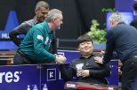 2025포르투3쿠션월드컵이29일포르투갈포르투에서개막한다.한국선수는조명우허정한김행직강자인차명종서창훈황봉주김도현권미루9명이참가한다.특히조명우는지난해준우승에머물렀던아쉬움을덜고정상도전에나선다.사진은지난해결승에서야스퍼스에게패해아쉬워하는조명우를야스퍼스,쿠드롱,타스데미르가격려해주고있다.(사진=SOOP)올네번째포르투월드컵29일스타트,조명우허정한김행직차명종강자인서창훈황봉주김도현권미루韓9명출전,SOOP전경기온라인생중계지난해포르투3쿠션월드컵결승전.대회내내승승장구하던조명우는야스퍼스에패해아쉽게준우승에머물렀다.그리고1년후설욕할기회가찾아왔다.올해네번째3쿠션월드컵인포르투3쿠션월드컵이29일개막,7월5일(한국시간)까지이어진다.세계캐롬연맹(UMB)주최로열리는이번대회에는‘디펜딩챔피언’이자부동의세계1위딕야스퍼스를비롯,에디먹스(벨기에)트란퀴엣치엔(베트남)타이푼타스데미르(튀르키예)마르코자네티(이탈리아)사메시돔(이집트)등톱랭커들이출전한다.호시탐탐정상을노리는프레드릭쿠드롱(벨기에)도나온다.2025포르투3쿠션월드컵포스터.(자료=SOOP)한국선수는지난해준우승자조명우(서울시청,실크로드시앤티)허정한(경남)김행직(전남,진도군)차명종(인천시체육회)강자인(충남체육회)서창훈황봉주(이상시흥시체육회)김도현(부천상동고부설방통고)권미루(부산)등9명이참가한다.조명우와허정한은시드권자로32강본선부터출전하며,김행직차명종강자인서창훈황봉주는최종4차예선(Q라운드),김도현은2차예선(PPQ라운드),권미루는1차예선(PPPQ)부터출발한다.SOOP은포르투3쿠션월드컵모든경기를온라인으로전세계생중계한다.한국어,영어등다국어송출을통해글로벌팬층과의접점을확대할예정이다.또한TV채널편성도강화돼,SOOPTV(KT지니129번,LGU+120번,SK브로드밴드234번,딜라이브160번,LG헬로비전194번,서경방송256번)를비롯해스카이스포츠,BallTV(베리미디어)에서도시청할수있다.대회생중계일정,다시보기,하이라이트영상등대회와관련된보다자세한사항은‘SOOP당구전용특집페이지(https://billiards.sooplive.co.kr/)’에서확인할수있다.[황국성MK빌리어드뉴스기자]