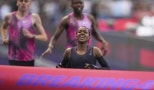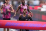 이벤트경기에서‘4분06초42’“우리는강하다”메시지도키프예곤이27일(한국시각)프랑스파리에서열린1마일이벤트경기에서결승선을향해달리고있다.파리/AP연합뉴스“미래세대에게불가능은없다는것을보여주기위해더많은것을이루고싶다.”올림픽3연패에빛나는케냐육상스타페이스키프예곤(31)이또한번도전했다.키프예곤은27일(한국시각)프랑스파리스타드샤를레티에서열린한스포츠브랜드가주최한이벤트경기인‘브레이킹4’에서육상1마일(약1609m)비공인세계기록(4분06초42)을세웠다.목표였던4분벽은깨지못했지만,가능성은충분히확인했다.‘브레이킹4’은1마일을4분안에달리는프로젝트로,첨단장비와남녀페이스메이커의도움을받으며뛰어기록은공인되지않았다.키프예곤은전문가들이개발한공기저항을최소화하는특수경기복을입고,특수제작된신발을착용했다.남자페이스메이커들에둘러싸여공기저항을최대한피하면서뛰었다.그결과400m를1분00초20,800m를2분00초75에통과했다.이후점차처지면서1200m를3분01초84에통과했고,마지막400m는1분4초58로달렸다.목표했던4분벽은깨지못했지만,1마일을4분06초42에통과하며자신이2023년7월모나코다이아몬드리그에서작성한세계기록(4분07초64)를뛰어넘었다.키프예곤은“4분벽돌파는시간문제다.내가아니라도누군가는언젠가해낼것이다.여자선수가1마일을4분안에달리는날이곧온다”고말했다.키프예곤은여자1500m올림픽3연패(2016년리우데자네이루,2021년도쿄,2024년파리),세계선수권3회우승(2017년런던,2022년유진,2023년부다페스트)을차지한육상스타다.1500m에서여성최초로3분50초벽도깼다.7살딸을둔엄마이기도한키프예곤은“나의딸과세상모든소녀에게말한다”며“우리를가로막을수있는것은없다.우리는어떤일도할수있고,우리는강하다는것을증명할수있다.계속전진하라”는메시지도전했다.