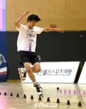 24일제천어울림체육관에서치러진'제20회아시아롤러스케이팅선수권대회'인라인프리스타일남자배틀슬라럼종목에서대한민국권늘찬이기술을펼치고있다./사진(제천)=김종원기자[STN뉴스=제천]강의택기자┃권늘찬(위너스)이아쉬움속에대회를마무리했다.권늘찬은24일제천에자리한어울림체육관에서진행된'제20회아시아롤러스케이팅선수권대회'인라인프리스타일여자주니어배틀슬라럼예선을소화했다.배틀슬라럼은기술의정수를알수있는종목이다.여러명이한조로묶여각자준비한기술을선보이고난이도와수행력에따라평가를받는다.이번대회예선에서는5명이한조로묶여각자2번의기회를부여받아연기를펼친 이후심판평가결과에따라 각조에서상위2명만준결승으로진출했다.권늘찬은아쉬움이많이남는경기를펼쳤다.2번의기회모두수준높은기술을선보이면서도여러개의콘을건드리면서감점이됐다. 결국권늘찬은탈락의아픔을맛봐야했고,이번대회에서는메달획득에실패했다.경기가끝난뒤표정에는아쉬움이묻어났다.STN뉴스=강의택기자