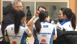 [앵커]'팀킴'강릉시청김은정선수의눈가가붉어졌습니다.컬링대표선발전4강플레이오프를넘지못했는데요."영미"를부르던'팀킴'의외침을2026밀라노-코르티나동계올림픽에서는들을수없게됐습니다.홍지용기자가그현장을다녀왔습니다.[기자][전북도청:강릉시청/여자부4강플레이오프(2025한국컬링선수권대회)]3대4,전북도청에한점차로뒤진'팀킴'강릉시청이마지막10엔드에서기회를잡았습니다.서로한번씩공격기회를남겨두고하우스중앙가까이스톤을붙여둬역전까지노려볼만했습니다.그런데전북도청의스무살스킵강보배가먼저던진샷이절묘합니다.빨간스톤이바깥쪽부터흐르면서같은빛깔의스톤두개를튕기고,또튕겨서안쪽으로파고듭니다.역전을막는묘수였습니다.마지막으로김은정이노란스톤을밀어넣었지만,조금모자랐습니다.결국4대4동점,승부는연장11엔드로갔습니다.이때부터스톤을하우스로밀어넣으면밖으로쳐내는,공방전이펼쳐집니다.마지막에서희비가갈렸습니다.김은정의샷이살짝옆으로휘어져서들어가지만,강보배가쳐내서승부를매듭짓습니다.7년전평창올림픽에서은메달을따내며컬링의매력을알렸고,3년전베이징올림픽에서도명승부를빚어냈던'팀킴'은3회연속올림픽진출을이뤄내지못했습니다.선수들의눈시울이붉어졌습니다.'안경선배'김은정역시눈가를연신훔쳤습니다.강릉시청은대표선발전풀리그에서4위에오른뒤4강플레이오프에서반전을노렸지만,좌절을맛봤습니다.[김은정/강릉시청'팀킴'(어제25일):'이번게임이저의은퇴경기는될수없다'라는마음으로(경기에)임했던거같습니다.]말없이떠나는팀킴,몇몇외국인팬들이남아서그아쉬움을달래줬습니다.[괜찮아요.팀킴선수들이여전히자랑스러우니까요.][화면출처유튜브'컬링한스푼'][영상취재반일훈방극철/영상편집박인서/인턴기자고운선]